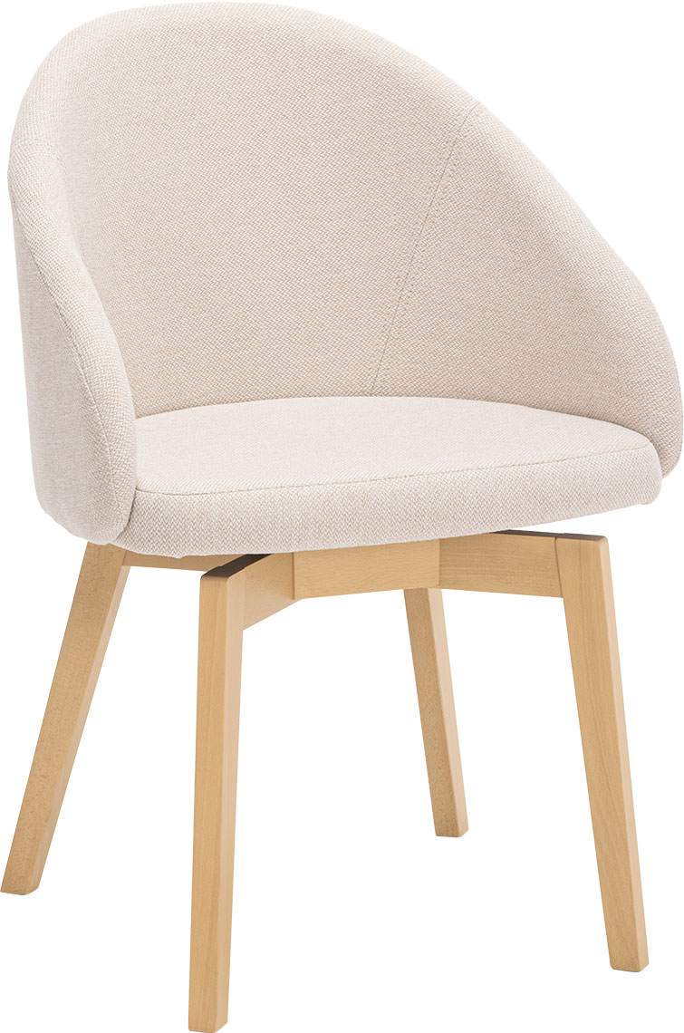 - Sitz und Rückenlehne des Stuhls sind mit sandbeigem Stoff bezogen.