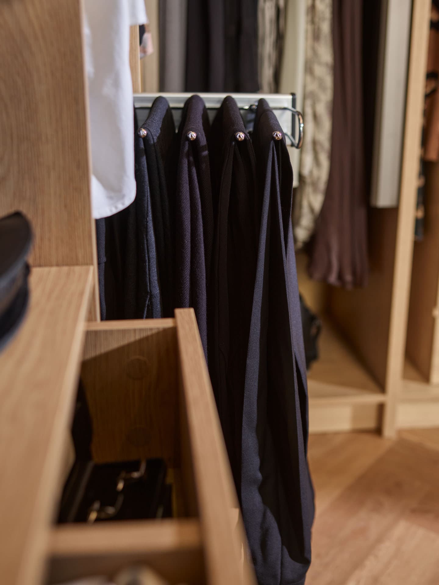 - Der Ausziehmechanismus (Teilauszug) erleichtert den Zugriff auf die Hosen, auch in einem tiefen Kleiderschrank.