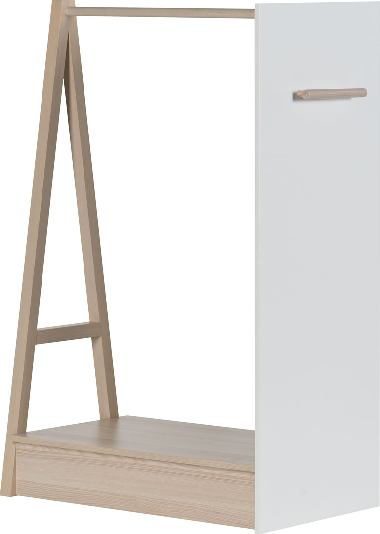 - Das Design des Bügels ist auf die Aussparung des Etagenbettes aus der gleichen Kollektion abgestimmt. Zwei bewegliche Kleiderbügel können unter dem Schlafbereich angebracht werden.
