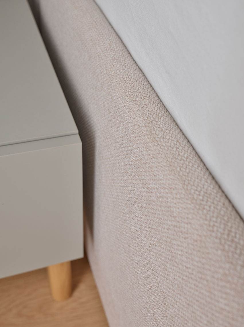 - Die Polsterung gilt sowohl für die Seiten der Kommode als auch für das Kopfteil. Eine Personalisierung ist mit einer großen Auswahl an Stoffen möglich, darunter natürliche, pflegeleichte oder haustierfreundliche. Ein vollständiges Musterbuch ist im VOX-Ausstellungsraum erhältlich.