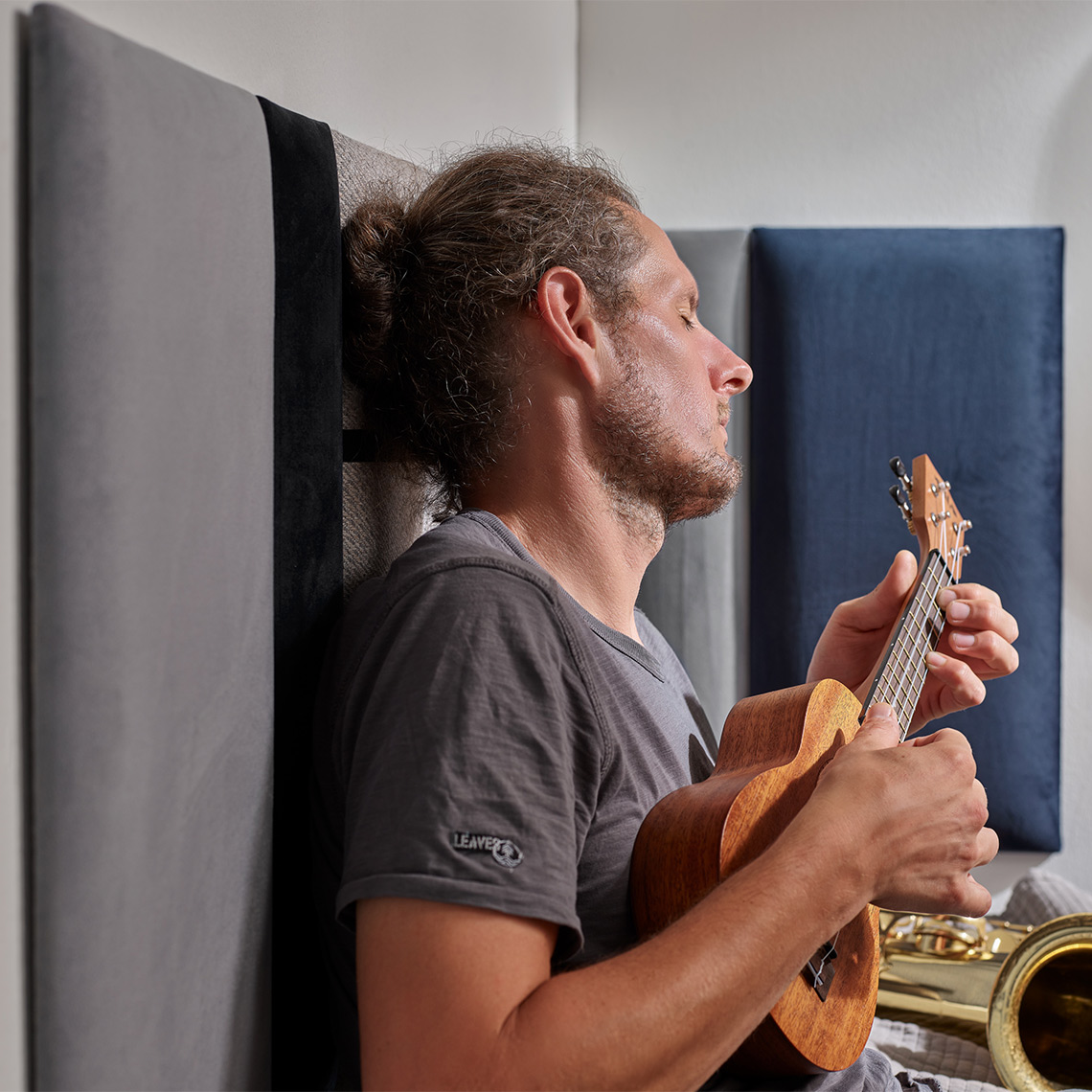 Das große Soform Regular Set in Marineblau und Grau bringt Wärme und Gemütlichkeit in die Einrichtung. Das fertige Set aus 6 elegant gepolsterten Paneelen wirkt als dekoratives Element im Wohnzimmer, Schlafzimmer oder Flur.