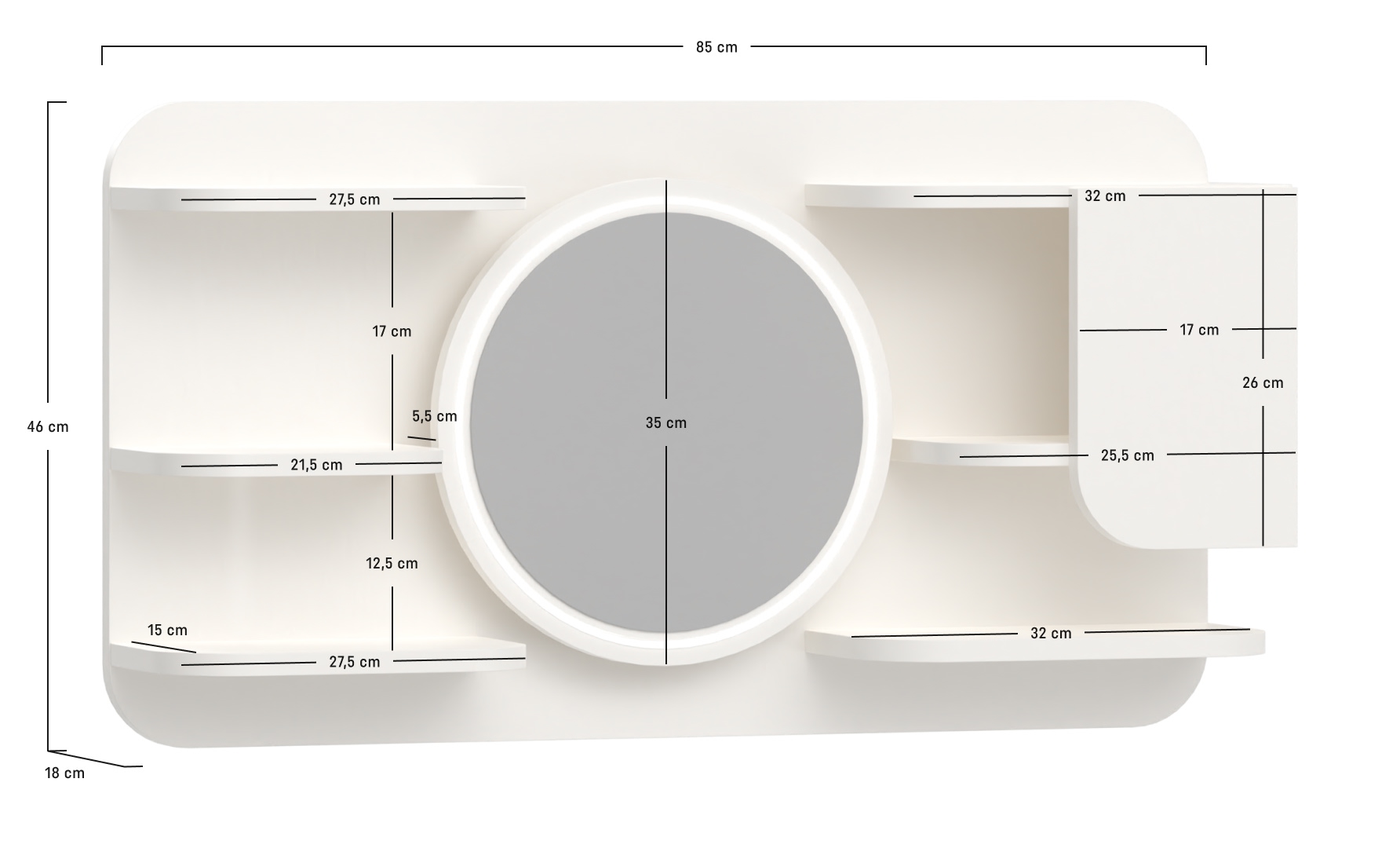 - Die Reli-Erweiterung ist in der Farbe Alabasterweiß erhältlich und bildet eine harmonische Einheit mit dem Frisiertisch, die sich in fast jeden Einrichtungsstil einfügt.