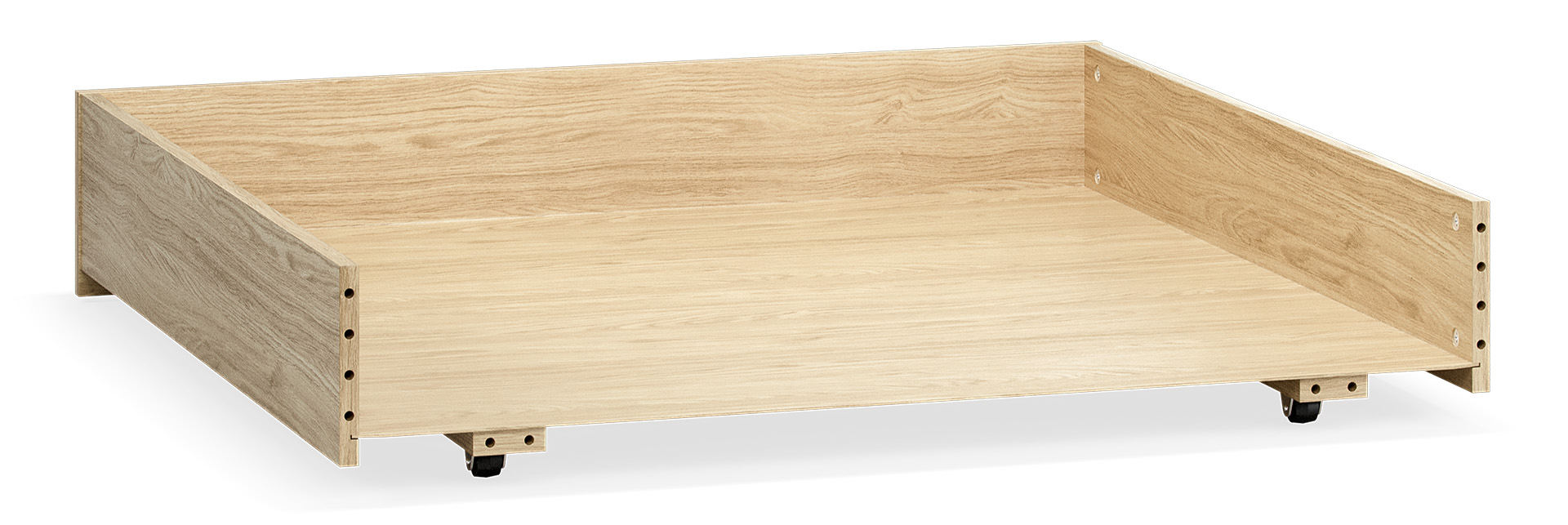 - Die Schublade füllt den leeren Raum unter dem Kinderbett und verwandelt ihn in einen praktischen Stauraum - perfekt für Bettzeug, saisonale Kleidung, Spiele oder Bücher. In der Schublade kann auch eine ausklappbare Matratze aus derselben Serie untergebracht werden.