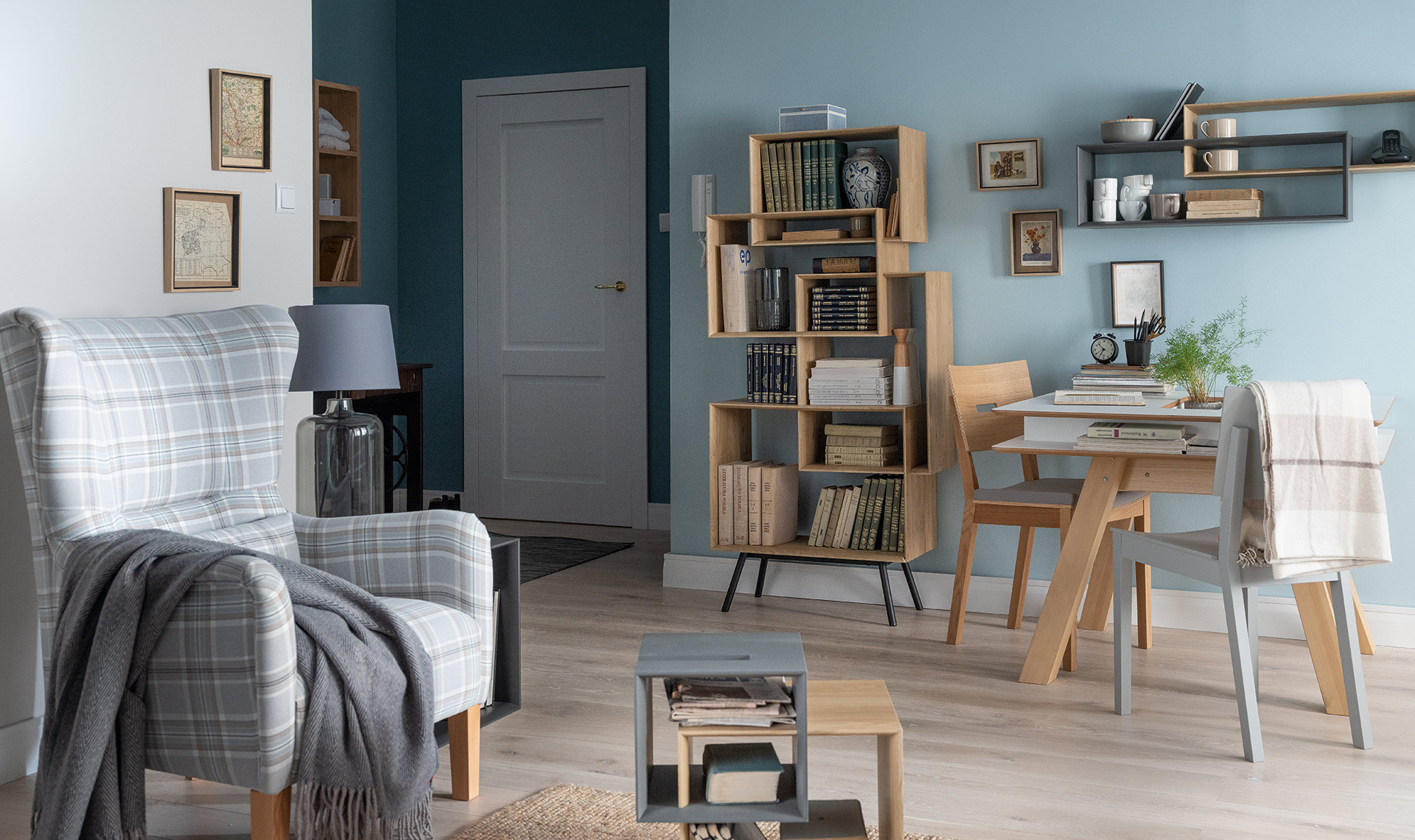 - Natürliche Eichenholzfarbe, weiß, grau, schwarz.