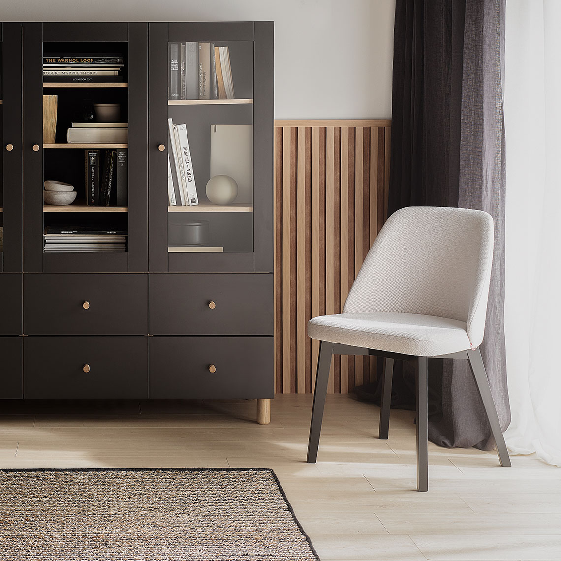 - Komm chair looks good in combination with other VOX furniture - the color of its upholstery and legs is matched to their finish.