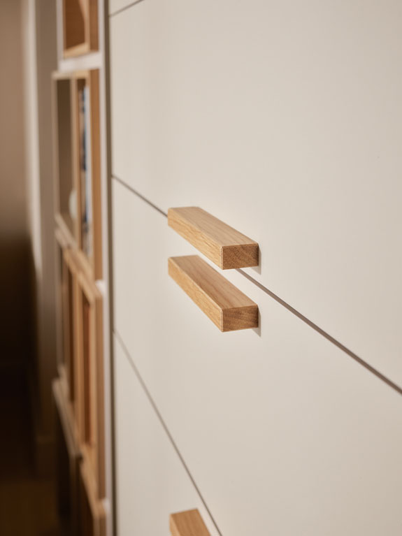 - By choosing metal handles in a color that matches the furniture, you will create a minimalist, subtle arrangement. On the other hand, the oak version will bring even more warmth to the interior.