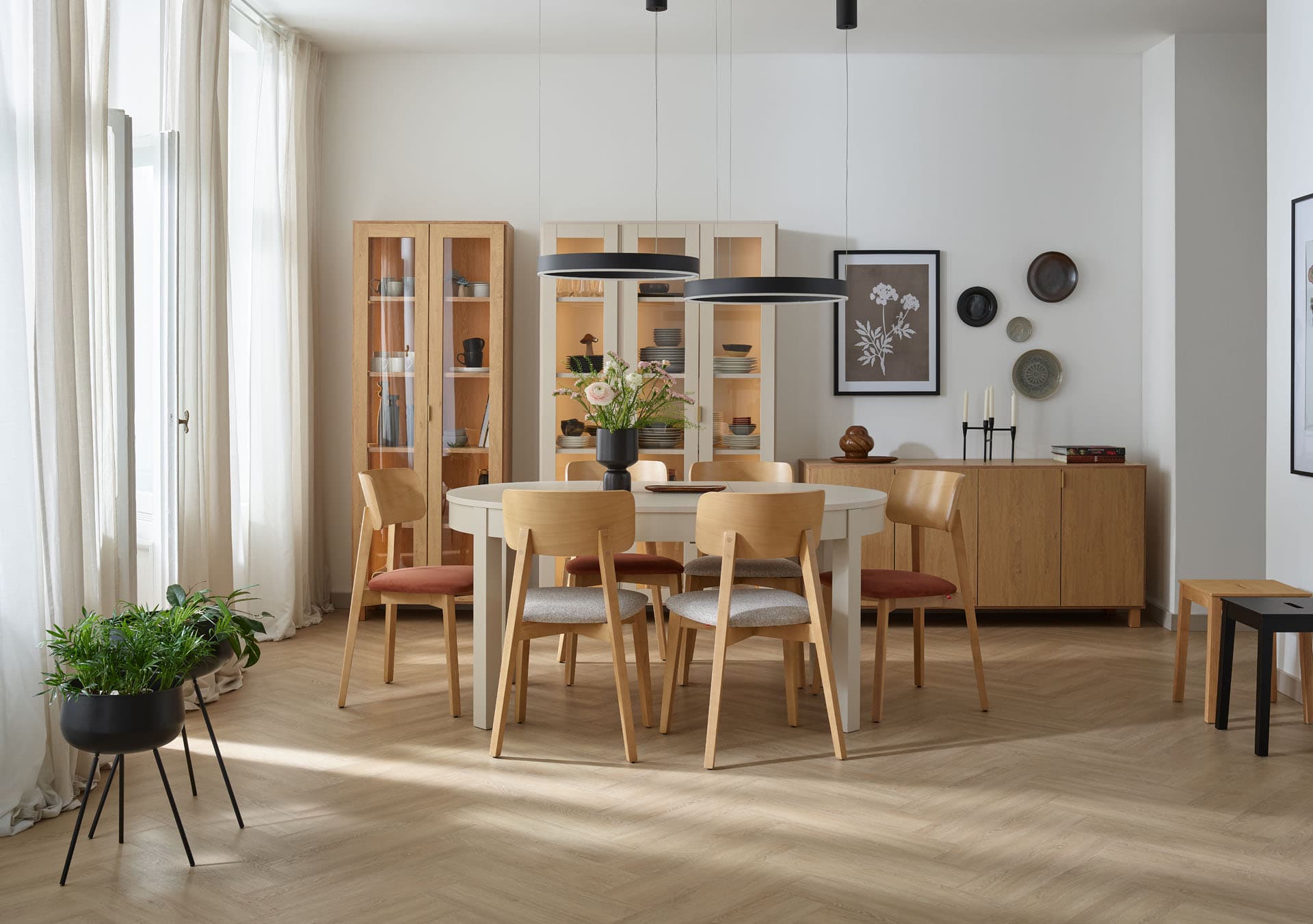 Armoires à portes pliantes, étagères et tiroirs éclairés, passe-câbles spéciaux - Simple est toute une gamme de meubles dotés de fonctions intelligentes et astucieuses qui facilitent la vie quotidienne.