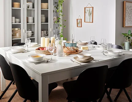 Lorsque vous choisissez une table à manger, tenez compte du nombre de membres de la famille et de visiteurs. D'autant plus qu'une table extensible permet d'organiser une fête même dans un petit appartement. Ce meuble prend très peu de place au quotidien, il convient donc également pour le coin repas dans le salon. Si nous avons besoin d'un plateau plus grand, nous pouvons rapidement transformer une table pliante carrée en table rectangulaire ou une table ronde en table ovale.