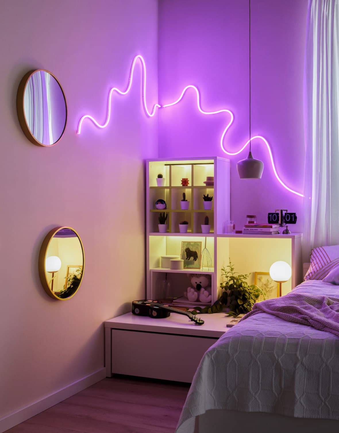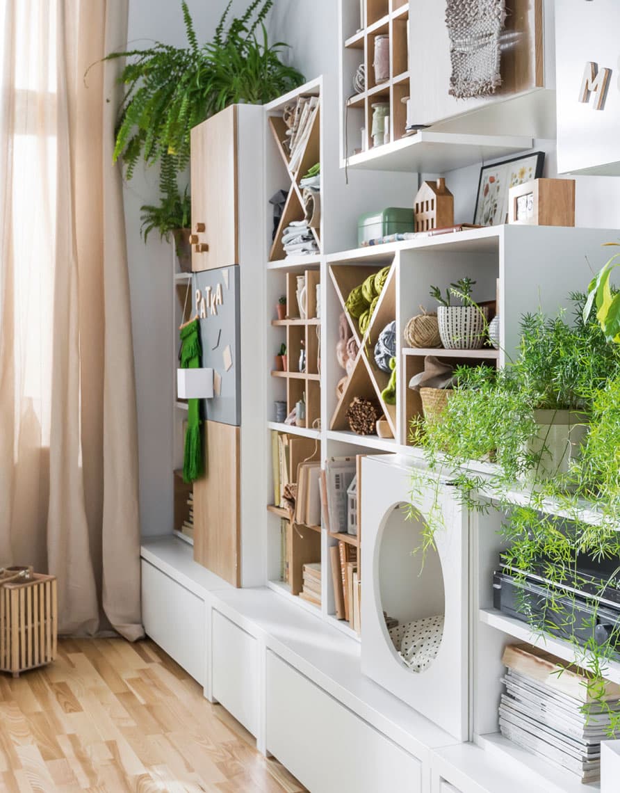 Les superpositions, les remplissages et les organisateurs interchangeables sont ouverts à l'expérimentation esthétique et à l'exploration créative. Le rétroéclairage multicolore des étagères et le Twinkly LED, dont la forme peut être modifiée à volonté, permettent de créer une atmosphère lumineuse.