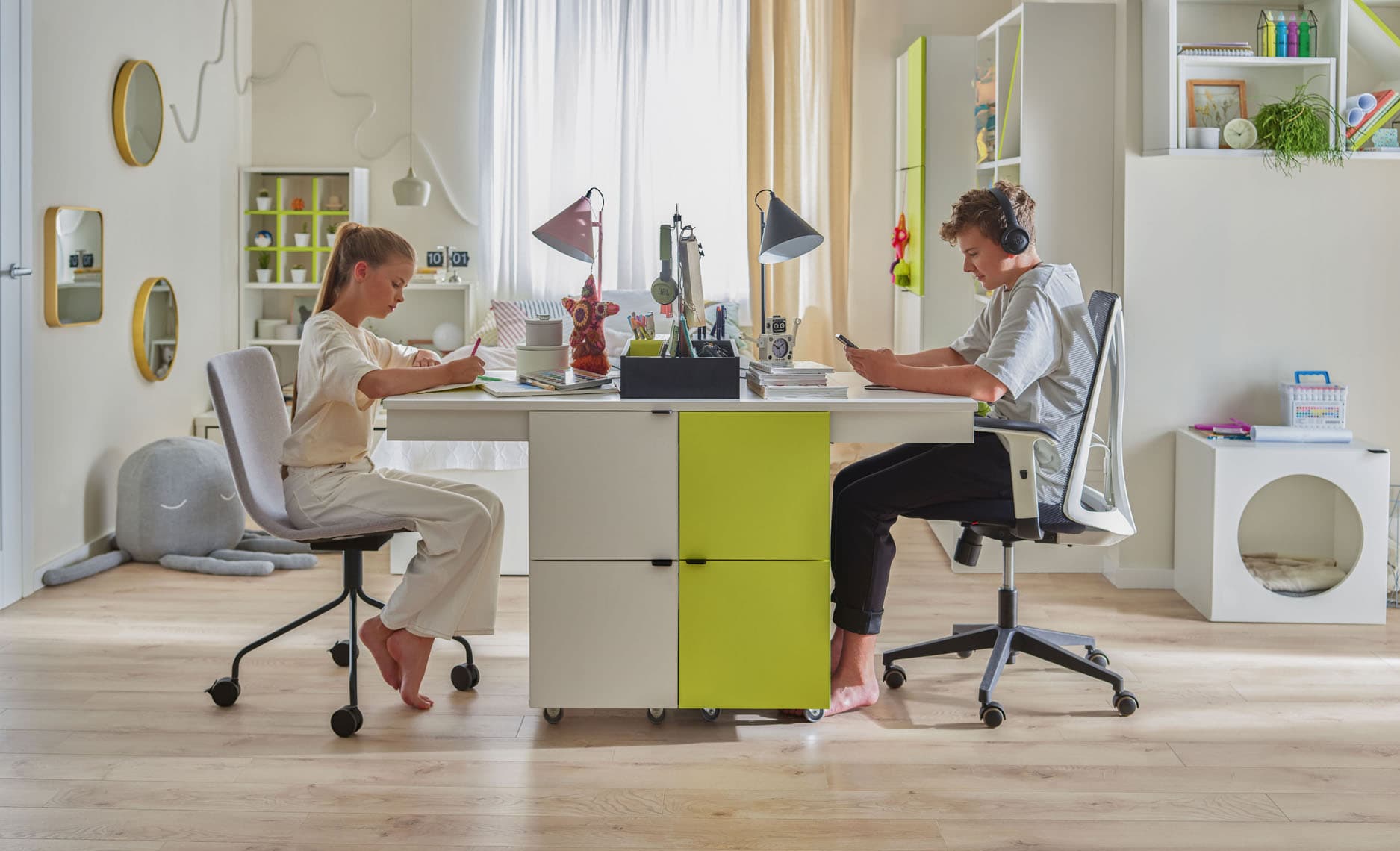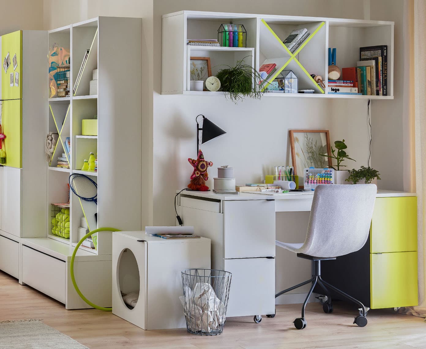 Vous pouvez adapter les modules Young Users à l'agencement de n'importe quel intérieur, qu'il s'agisse d'un grenier en pente ou d'une petite chambre pour les frères et sœurs. Connectez, combinez, construisez et ajoutez d'autres modules au fur et à mesure que les besoins de votre enfant grandissent.
