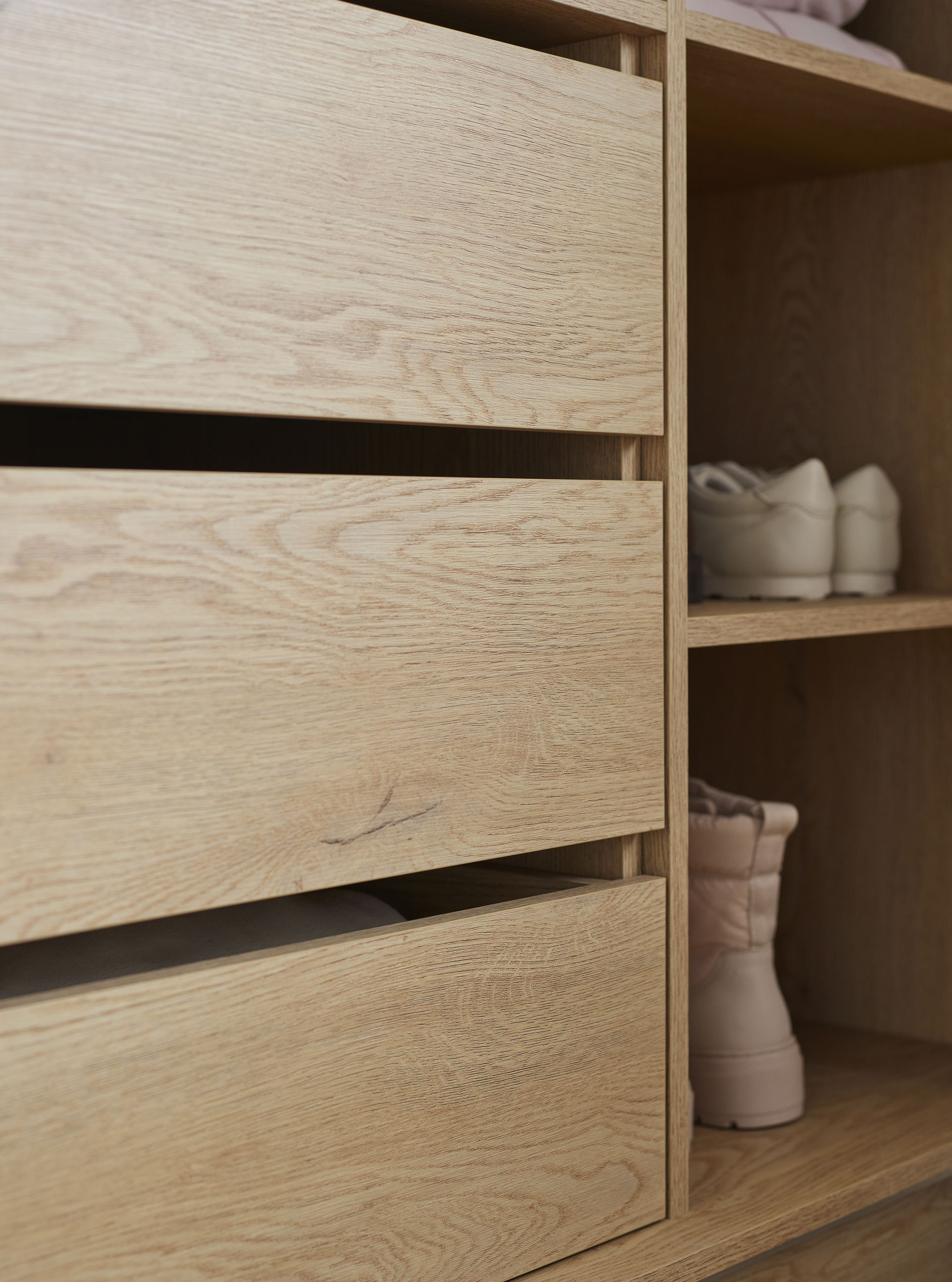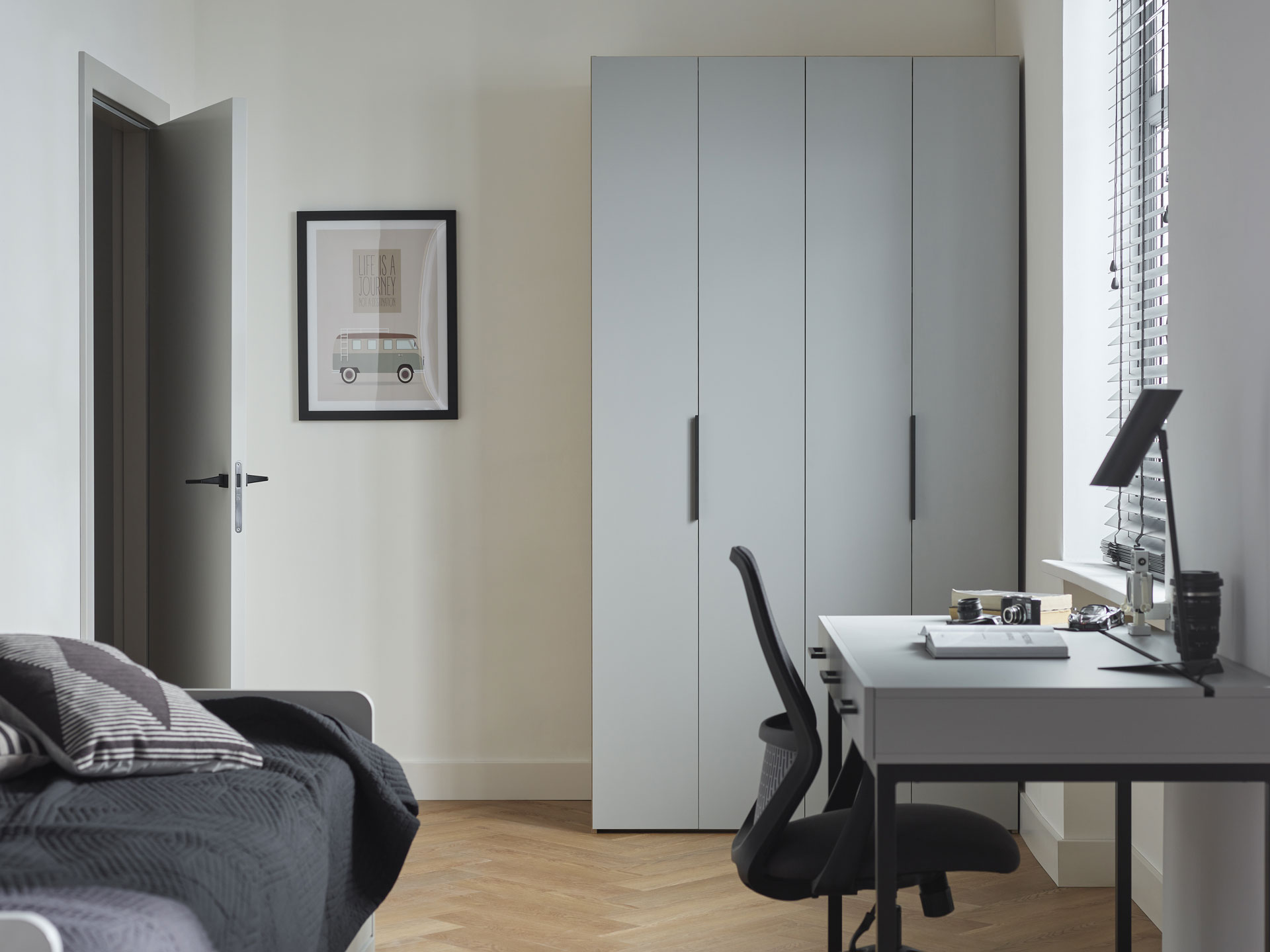 - La collection Stor comprend également des armoires plus larges de 140 cm, 160 cm, 175 cm et 200 cm dans un choix de 2 hauteurs. Elles peuvent être combinées entre elles pour créer une enceinte spacieuse qui facilite le rangement.