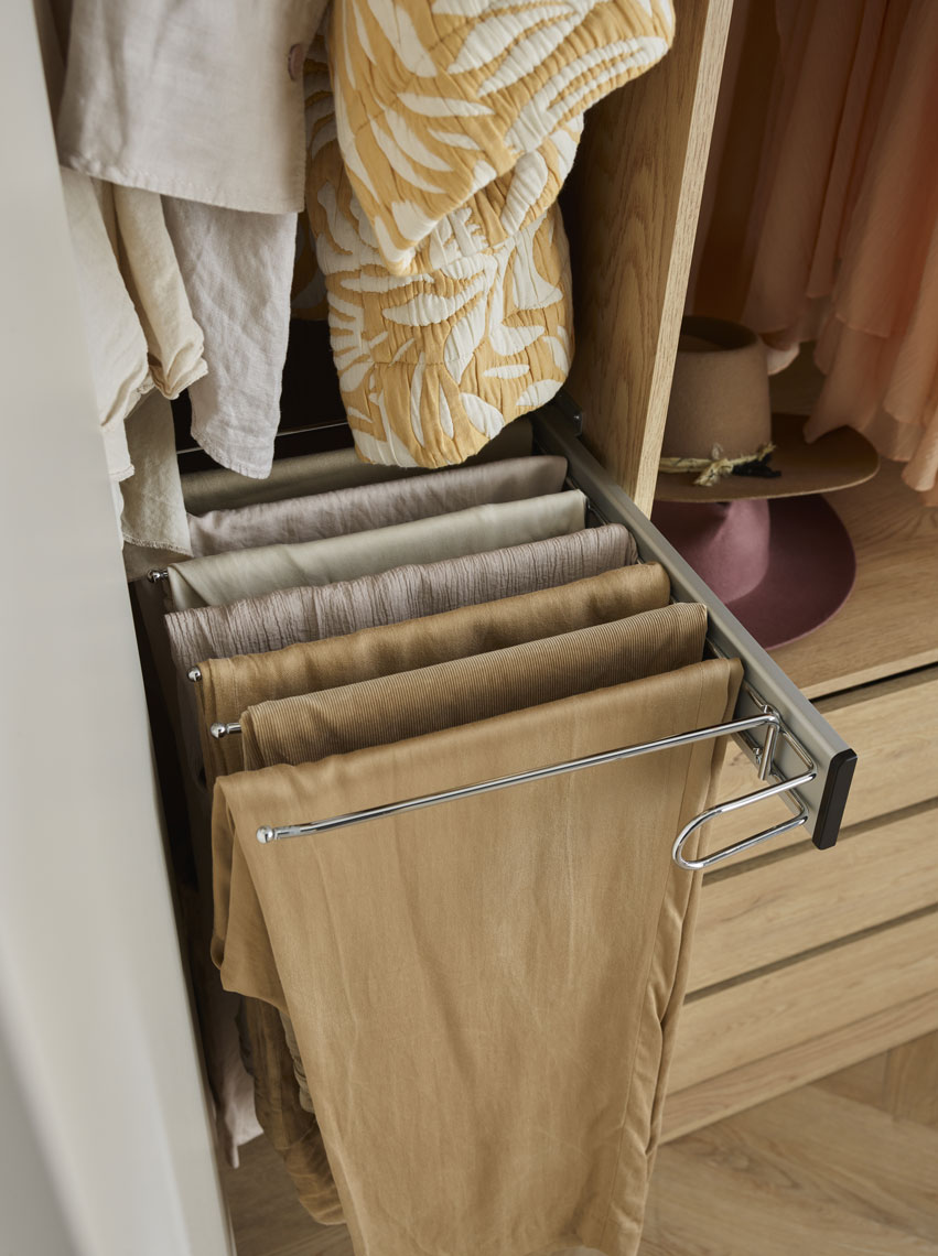 - Les tringles et les cintres (dans certains ensembles intérieurs) sont en métal.