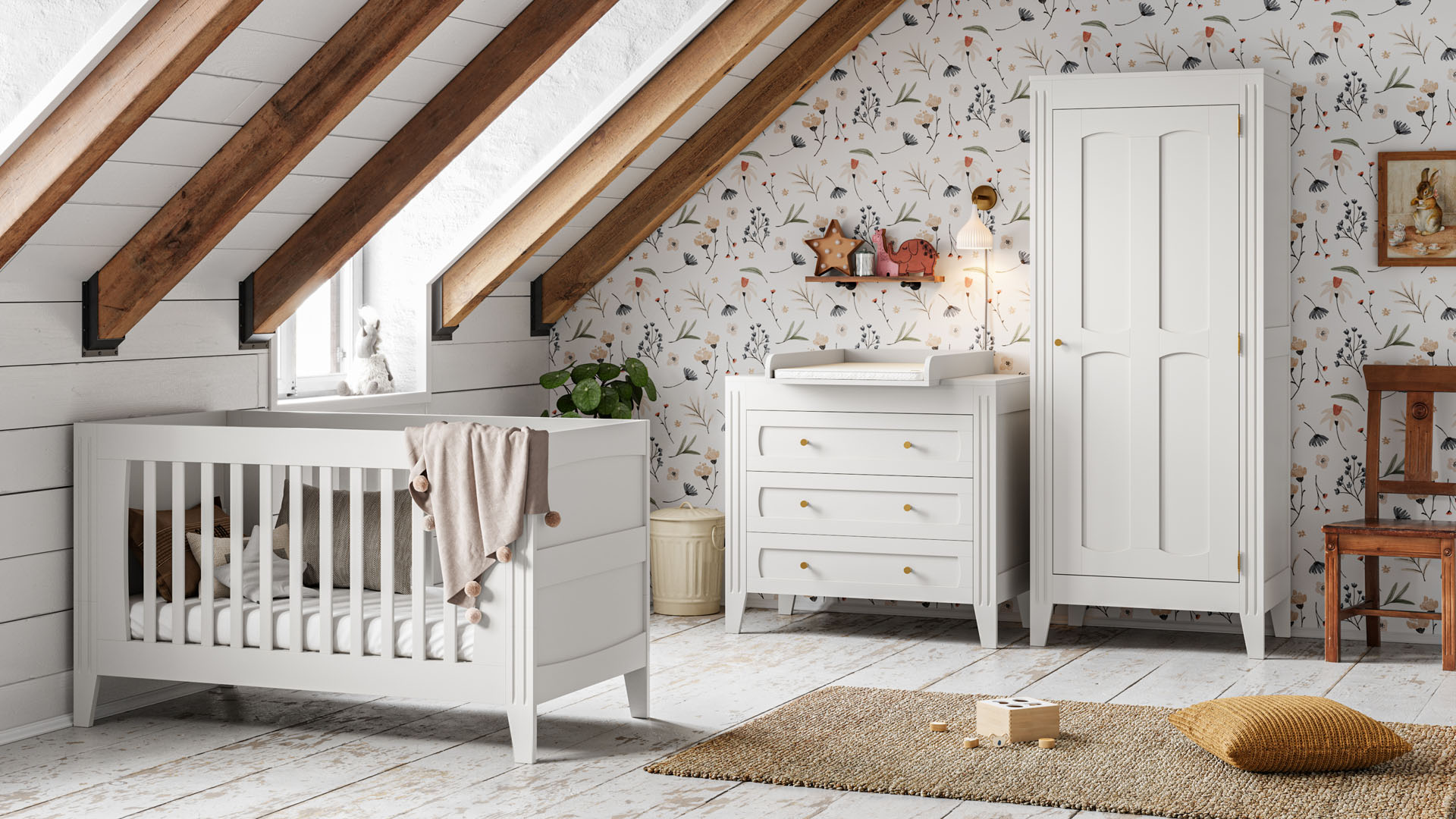 - À l'intérieur de l'armoire, vous trouverez la tringle idéale pour suspendre les vêtements de votre bébé, de sorte que vous aurez toujours tout sous les yeux. En dessous, vous trouverez une étagère où vous pourrez ranger la literie ou les chaussures.