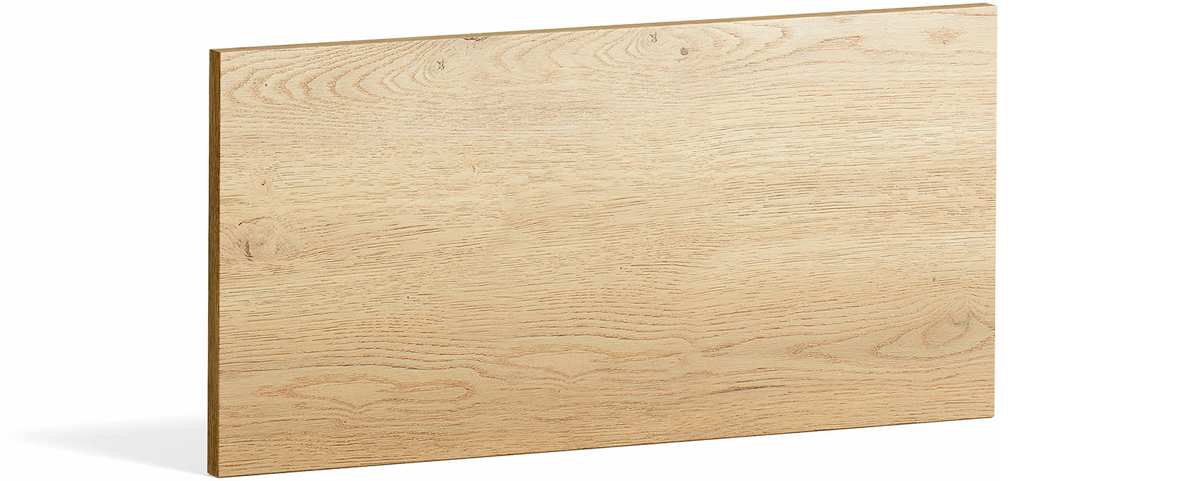 - La couleur du panneau peut être choisie parmi 5 options. En chêne, le grain est horizontal, à l'inverse du sens utilisé sur l'armoire dans cette teinte.