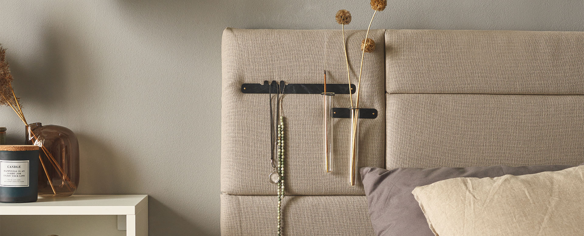 Une composition de lattes noires avec des flacons en verre sera un complément intéressant à votre décoration d'intérieur. Vous pouvez les fixer sur des meubles, des panneaux Soform ou un mur et les utiliser pour présenter de petits objets qui créeront une ambiance. Bijoux préférés, lavande séchée, écouteurs constamment perdus - l'ensemble conçu par Dorota Balewicz vous apportera un confort quotidien et une réelle liberté d'agencement.