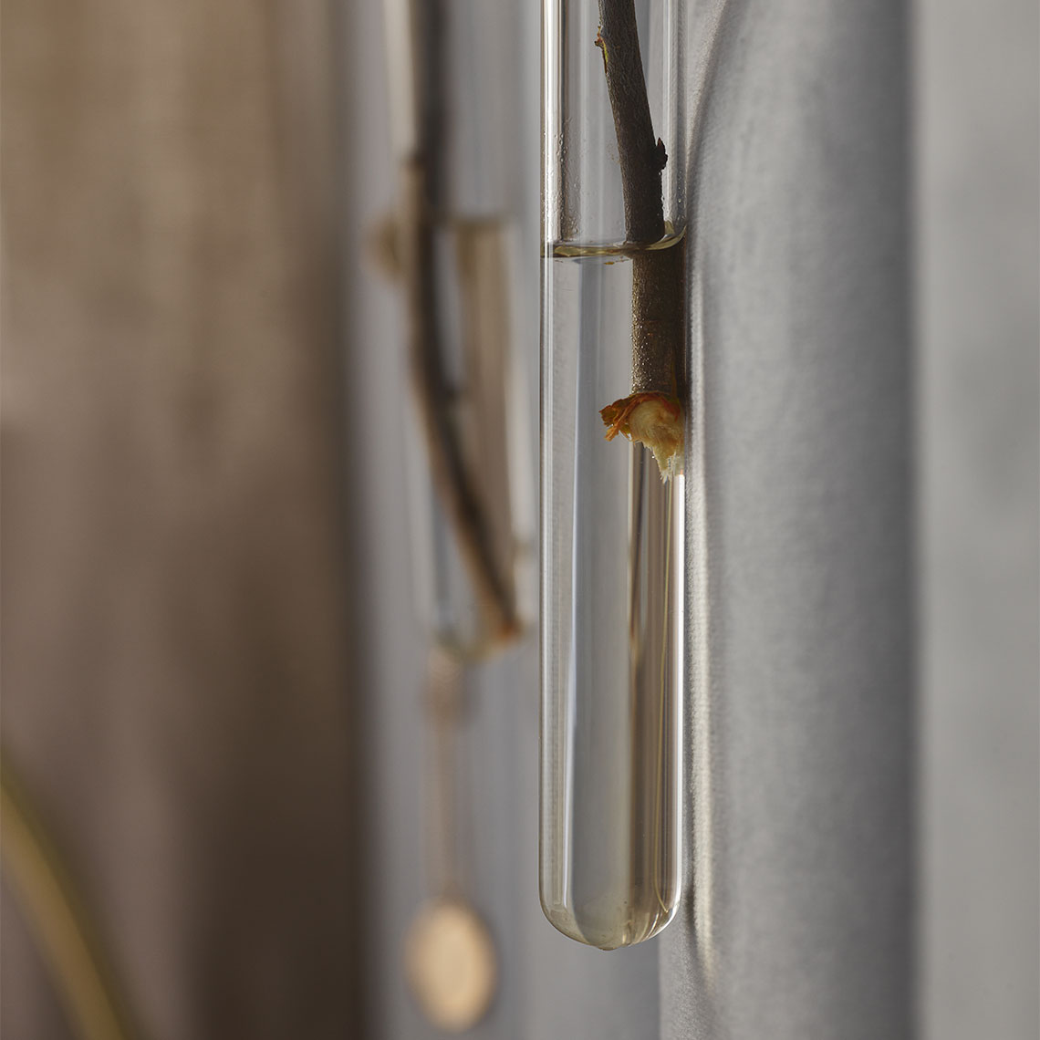 - Les deux lattes contiennent des supports pour les flacons. Vous pouvez y verser un peu d'eau et y placer des fleurs vivantes ou les utiliser comme réceptacle pour des brindilles séchées.