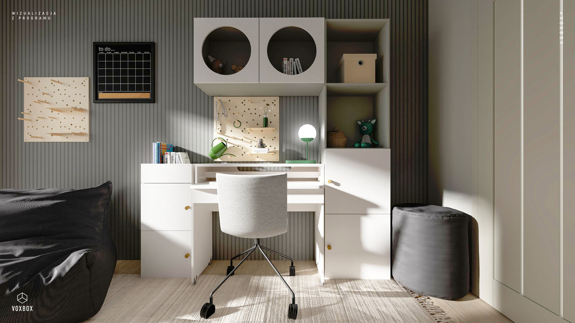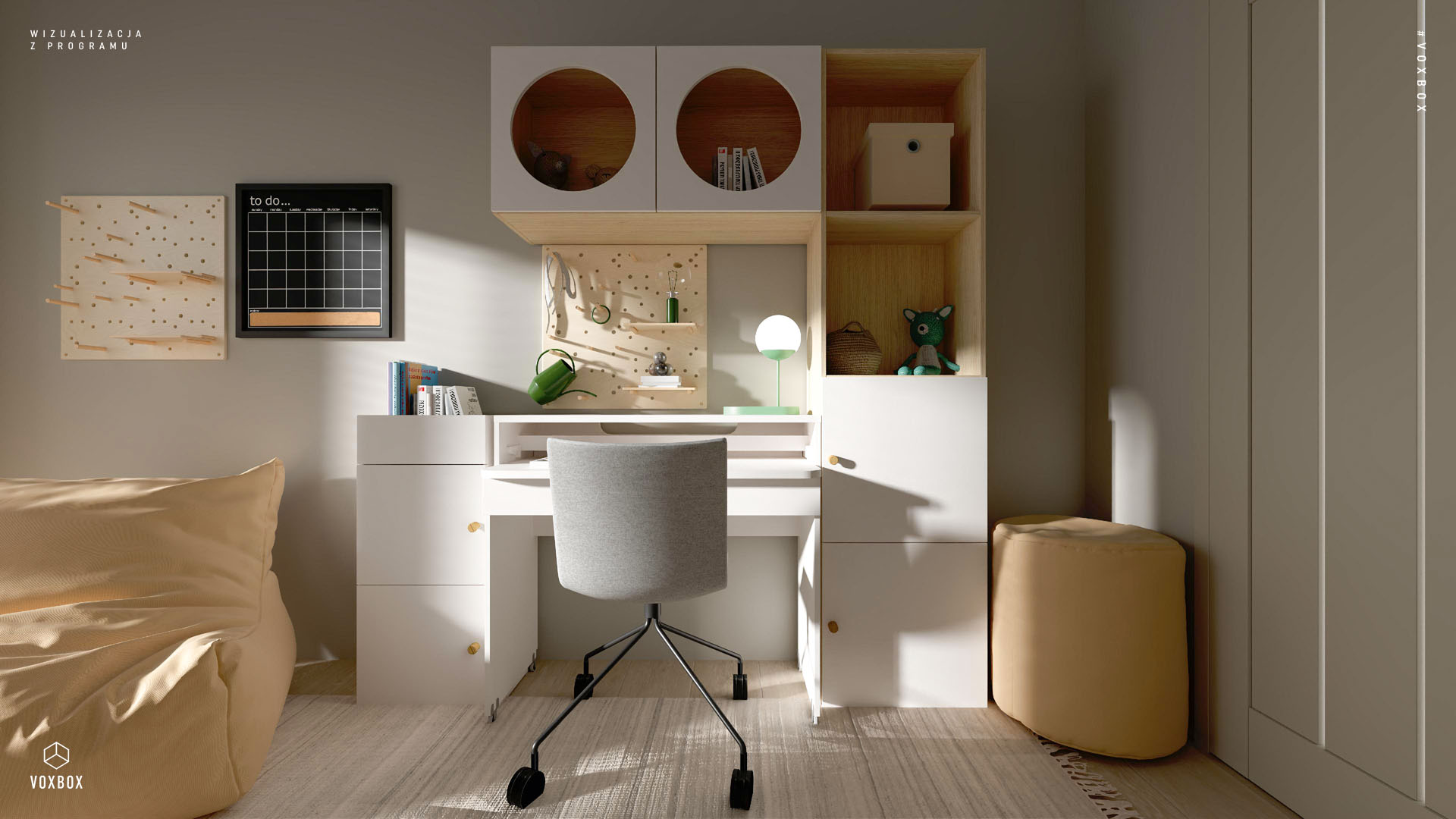 - En choisissant les façades, vous pouvez l'adapter à vos préférences. Des trous spéciaux sont préparés sur les côtés du meuble, ce qui permet de choisir parmi de nombreux agencements différents. La porte peut être pleine ou partiellement ouverte grâce à des portes à trous ronds. Il est ainsi possible de cacher des objets moins esthétiques et d'exposer de manière intéressante les gadgets et décorations préférés.