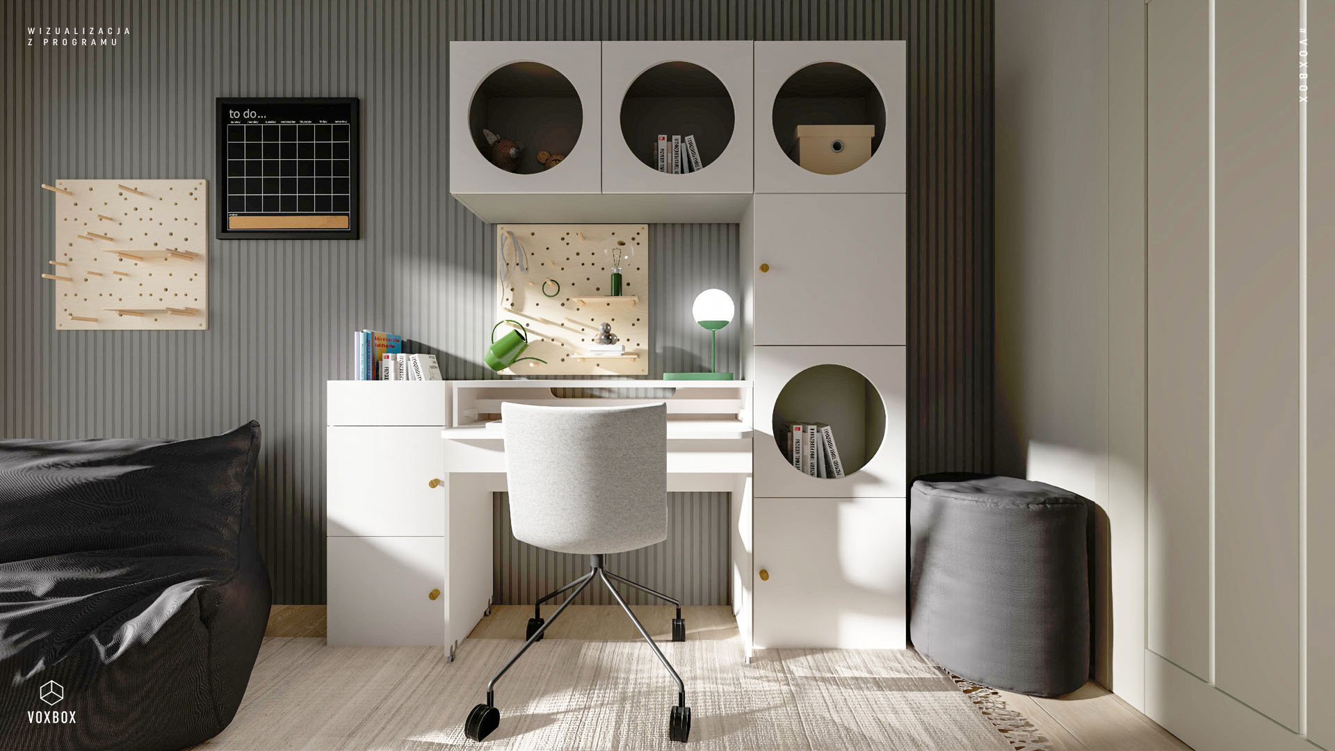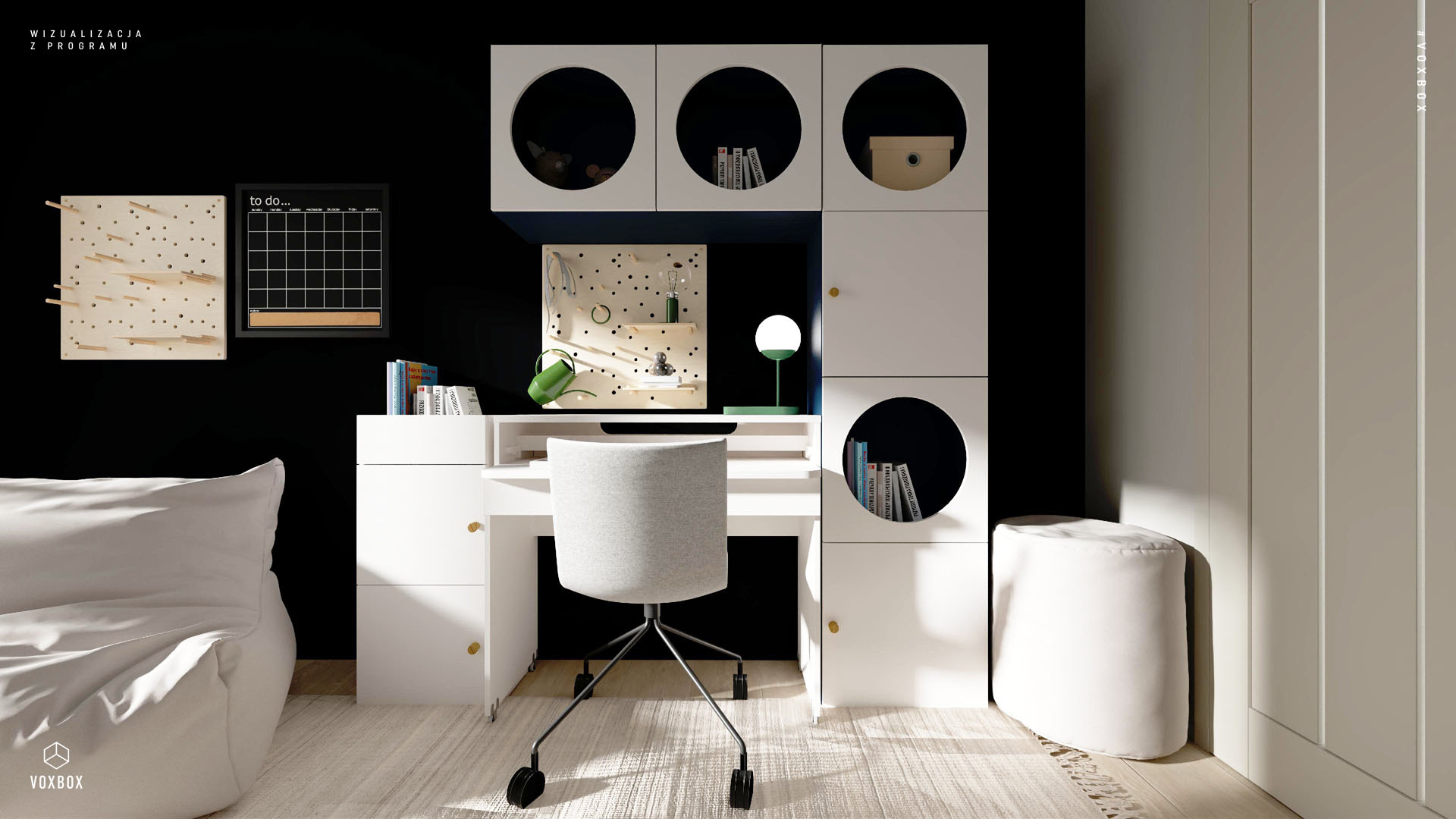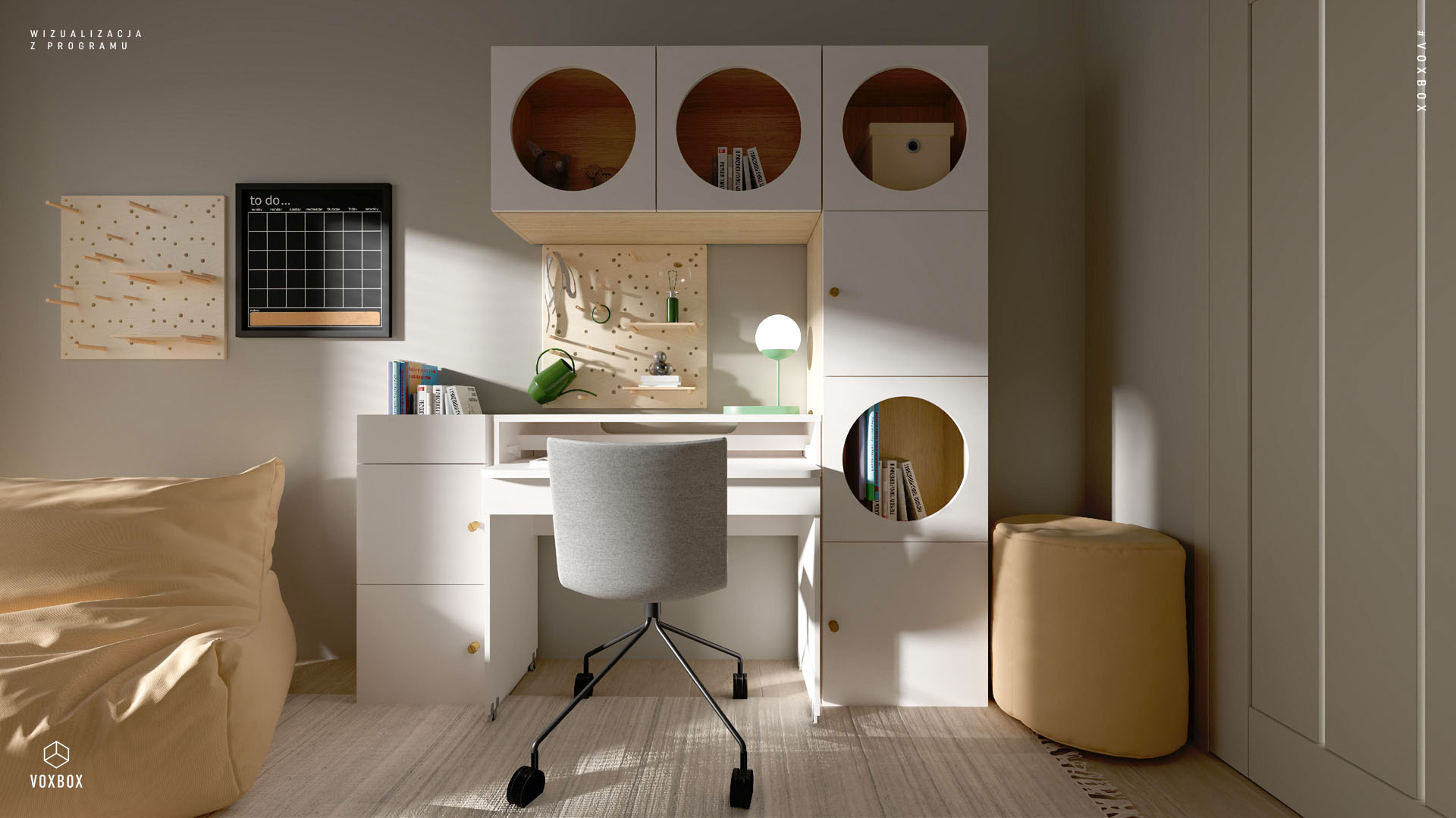 - En choisissant les façades, vous pouvez l'adapter à vos besoins. Des trous de forage spéciaux sont préparés sur les côtés du meuble, ce qui vous permet de choisir parmi de nombreux agencements différents. Il peut avoir une porte pleine ou être partiellement ouvert grâce à des portes à trous ronds. Il est ainsi possible de cacher des objets moins esthétiques et d'exposer de manière intéressante les gadgets et décorations préférés.