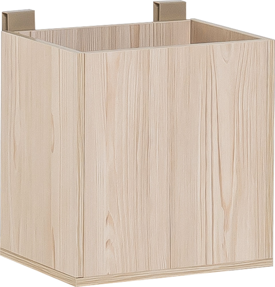 La boîte verticale peut être accrochée à l'échelle des meubles de la collection Stige. Elle servira à ranger les cahiers, les blocs de construction et d'autres objets qu'il est utile d'avoir à portée de main. Des crochets sont fixés au meuble.