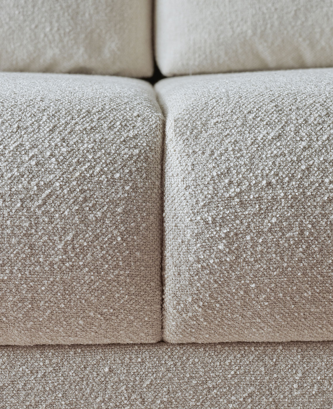 Les photos montrent le canapé en tissu angola 10 (beige clair) et grace 39 (foncé).