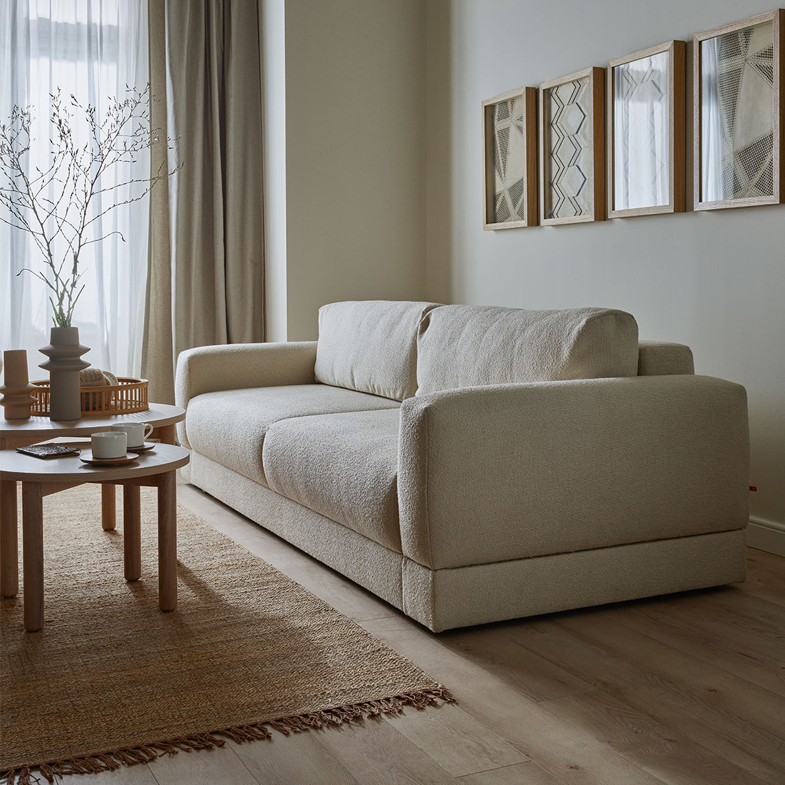 Parfait pour un moment de détente avec un livre, une conversation confortable et une longue soirée devant la télévision. Le canapé Stello séduit en un clin d'œil. Le large siège avec dossier moelleux peut accueillir confortablement 3 personnes. Lorsqu'il est déplié, ce meuble constitue un endroit confortable pour dormir et, au quotidien, il sert à ranger le linge de lit. Ses formes douces et arrondies sont mises en valeur par les garnitures décoratives, au choix en tissu ou en bois. Vous pouvez choisir le matériau de revêtement du meuble parmi plusieurs centaines de tissus aux propriétés différentes.