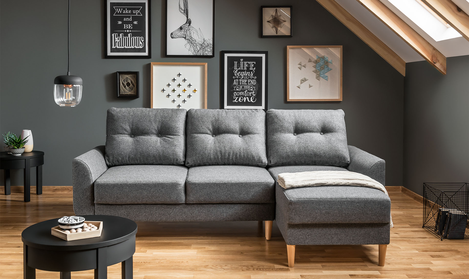 Le siège utilise des ressorts ondulés, des formateurs d'os et de la mousse de polyuréthane. Le dossier est souple grâce à des coussins remplis de granulés de mousse et de perles de silicone. Leurs housses sont déhoussables pour le nettoyage. Le cadre du canapé d'angle est fabriqué en bois de hêtre et de pin, en panneaux de particules, en contreplaqué et en panneaux de fibres. L'ensemble est soutenu par des pieds stables en hêtre massif.