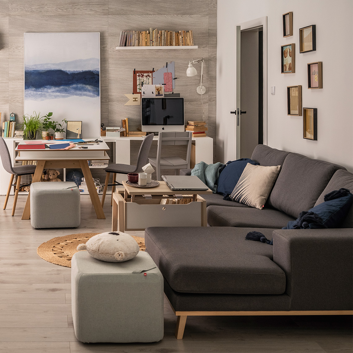 - Les coussins du dossier sont inclus dans l'ensemble. Pour assortir le coin à votre intérieur, vous pouvez choisir la finition. Le canapé d'angle est disponible en gris (SOFIA 16). Vous trouverez dans tous les magasins VOX, avec l'offre de meubles, un carnet de modèles complet des matériaux et des couleurs disponibles à commander.