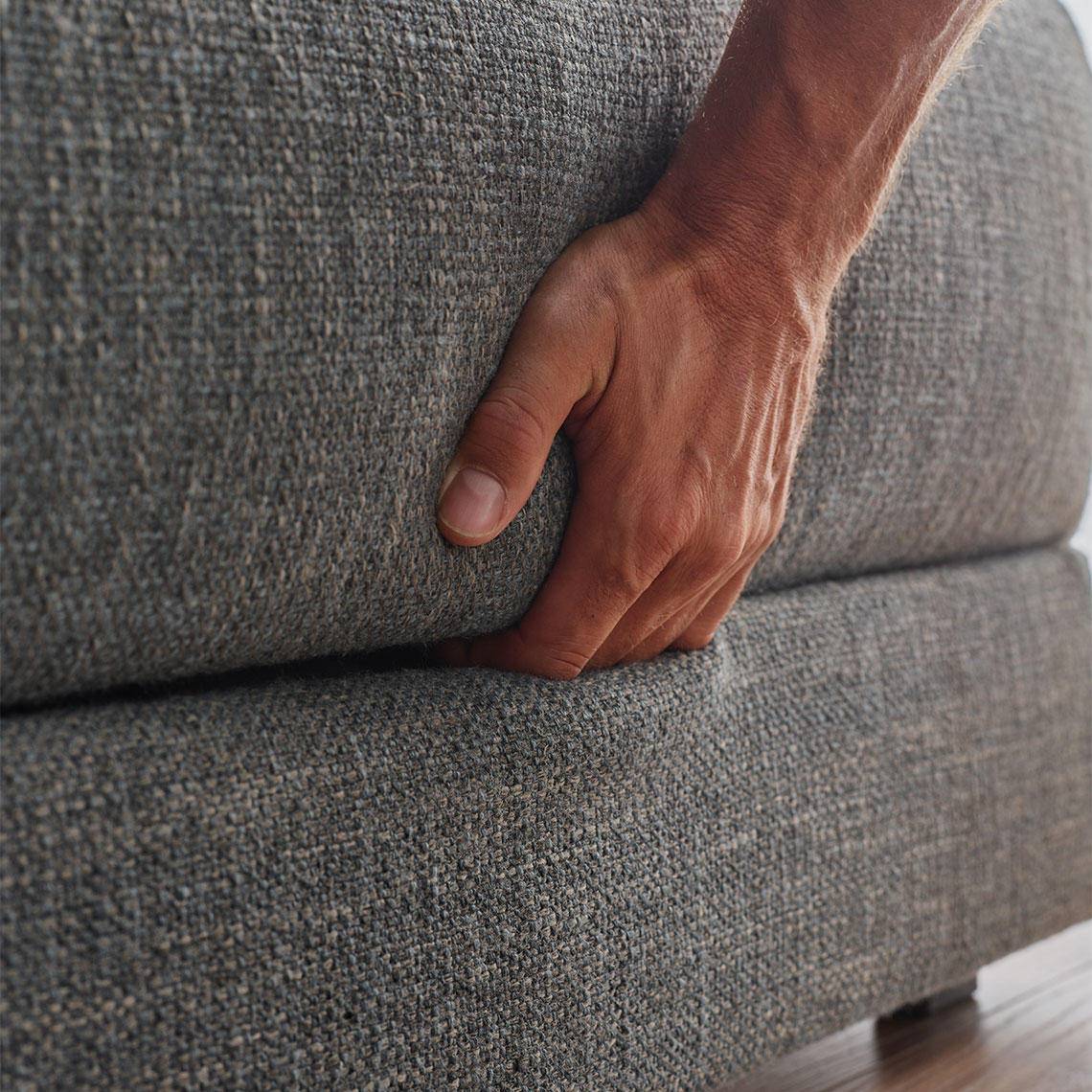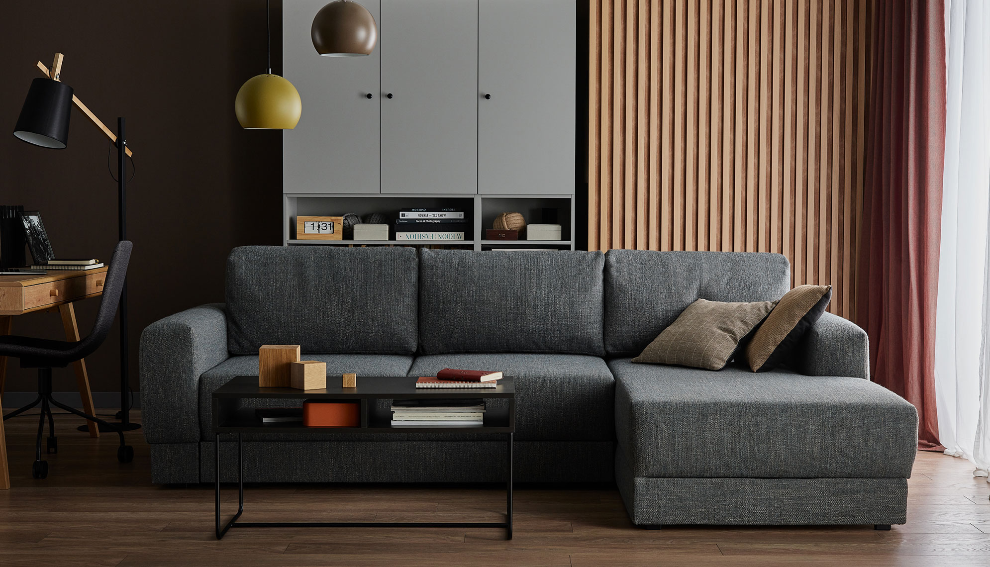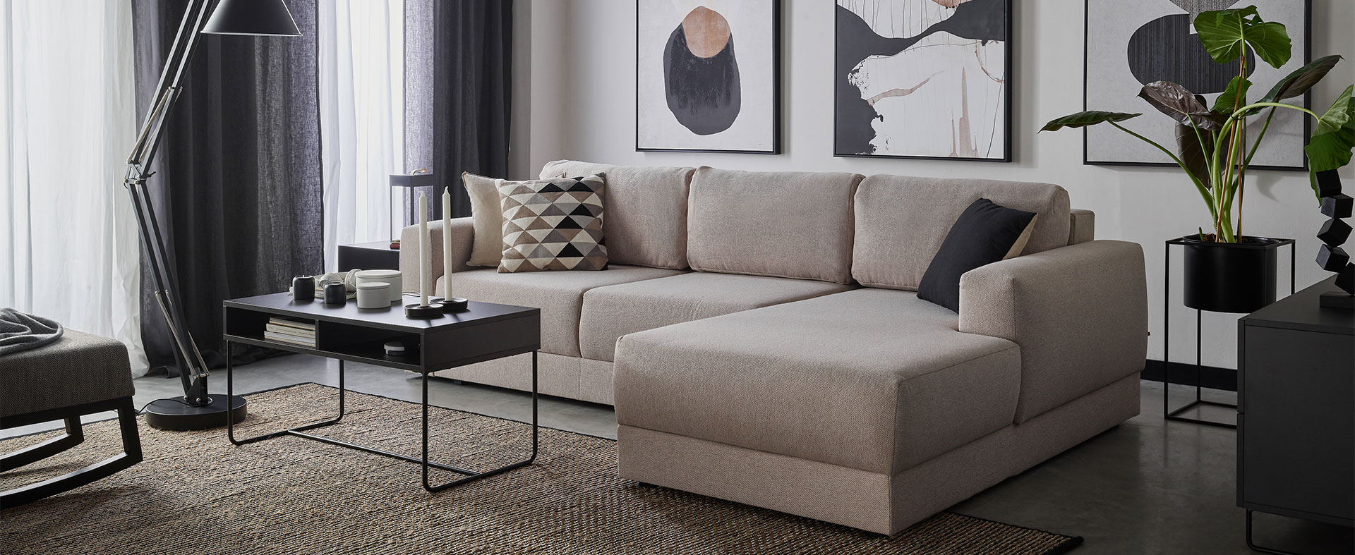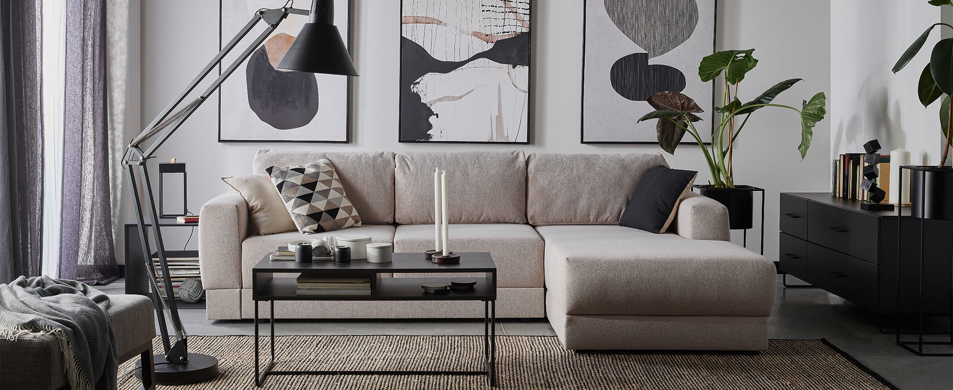 - Le canapé d'angle Stello a des pieds bas et invisibles.