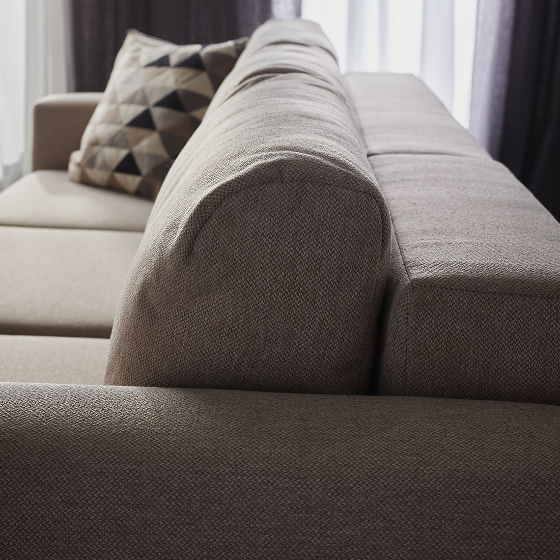 - 3 personnes peuvent se détendre confortablement sur le canapé d'angle. L'assise large, le dossier moelleux, les accoudoirs pratiques et la chaise longue allongée permettent de se détendre confortablement en position assise et semi-allongée.