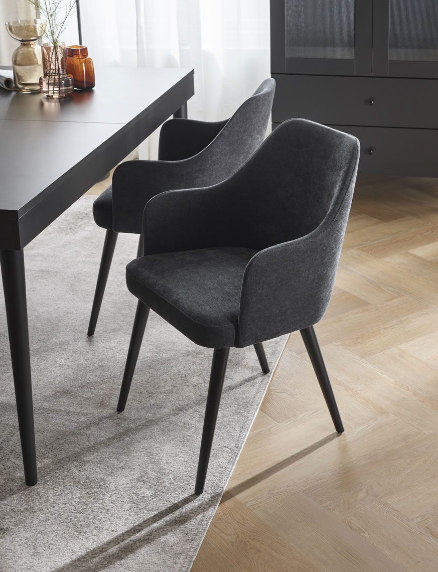 - La version foncée de la chaise Alivio est revêtue du tissu Storm 99 de Davis. Il s'agit d'un tissu chenille facile à nettoyer (élimination des taches à l'eau). Le tissu est agréable au toucher et présente des paramètres élevés de résistance à l'abrasion :