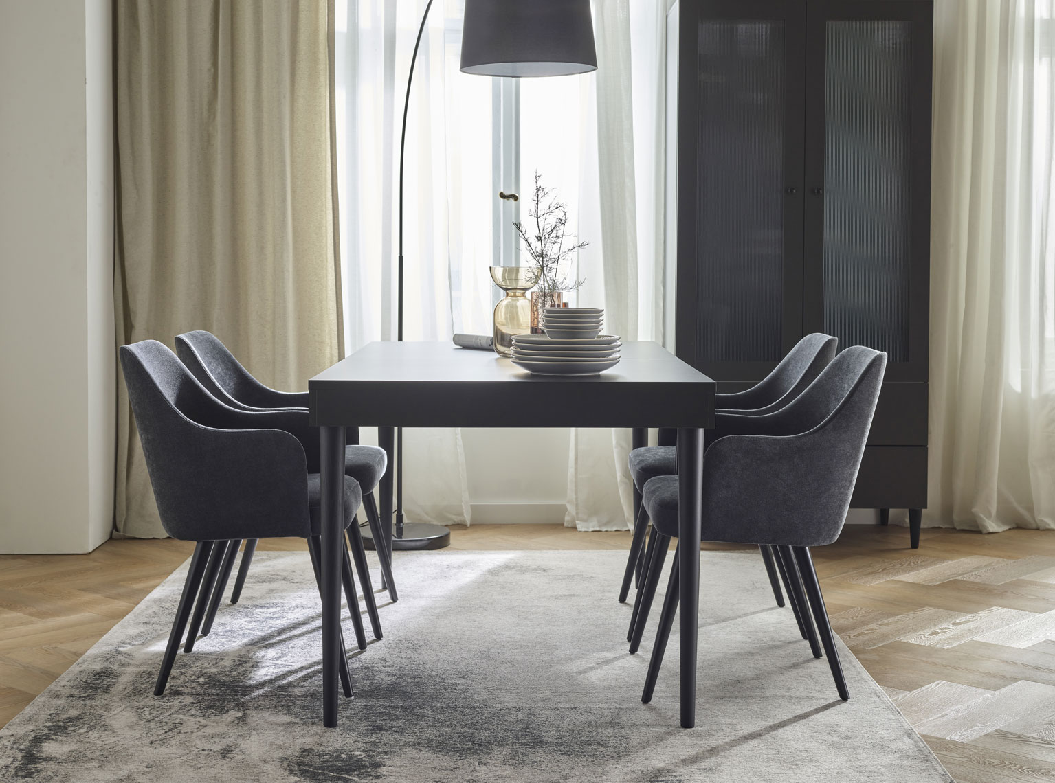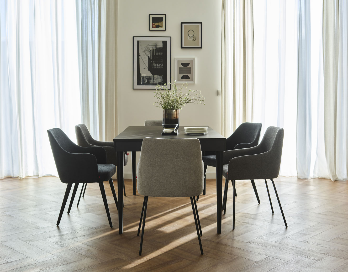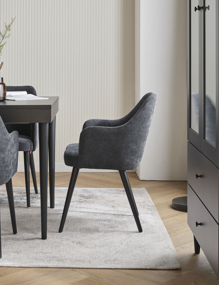 - Résistance à l'abrasion : 120 000 cycles Martindale. - La version légère de la chaise est revêtue d'un tissu Solid 30, qui présente un motif mélangé et est lisse et agréable au toucher. Une caractéristique importante de ce tissu est son revêtement hydrophobe (qui empêche l'absorption des liquides renversés).