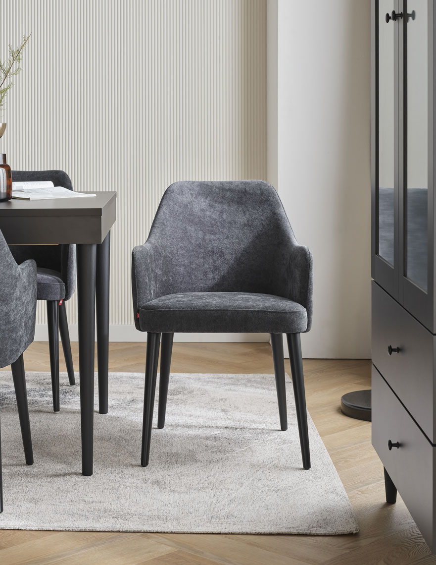 - Le rembourrage de la chaise est fait d'un tissu agréable au toucher avec des paramètres techniques élevés et un look très moderne.