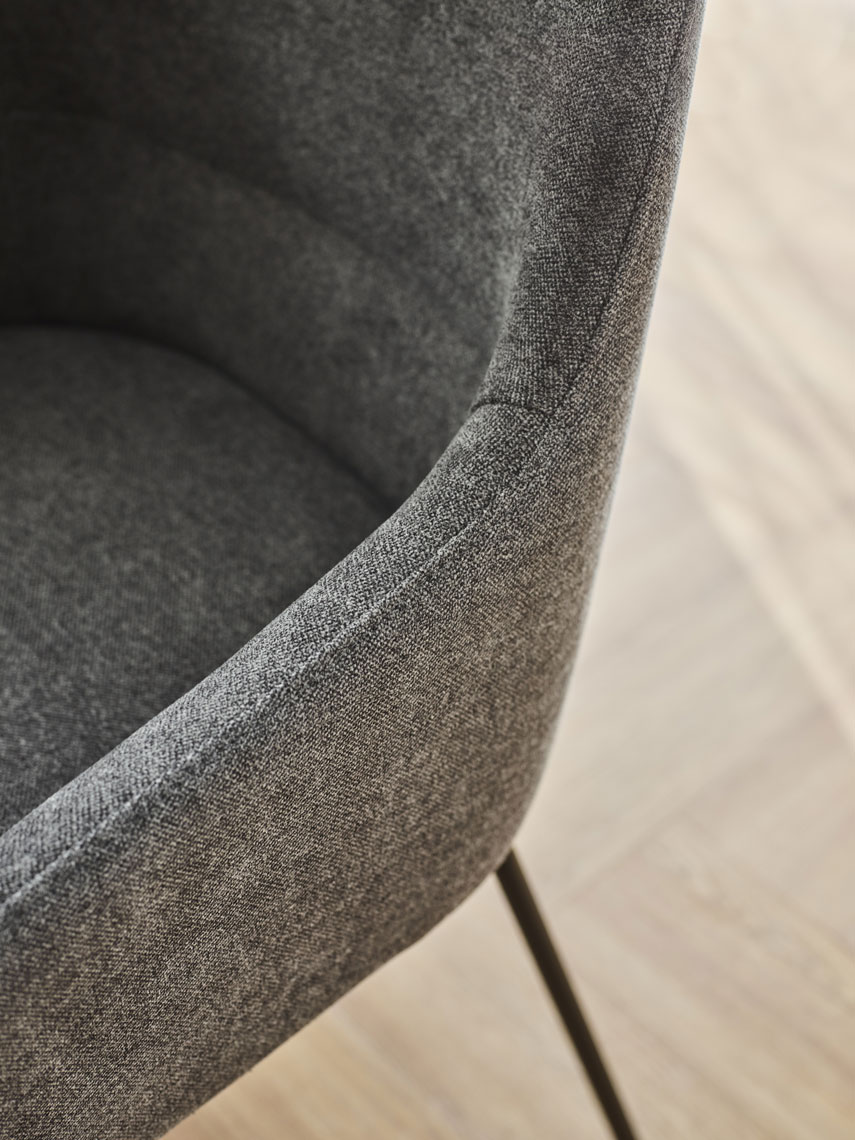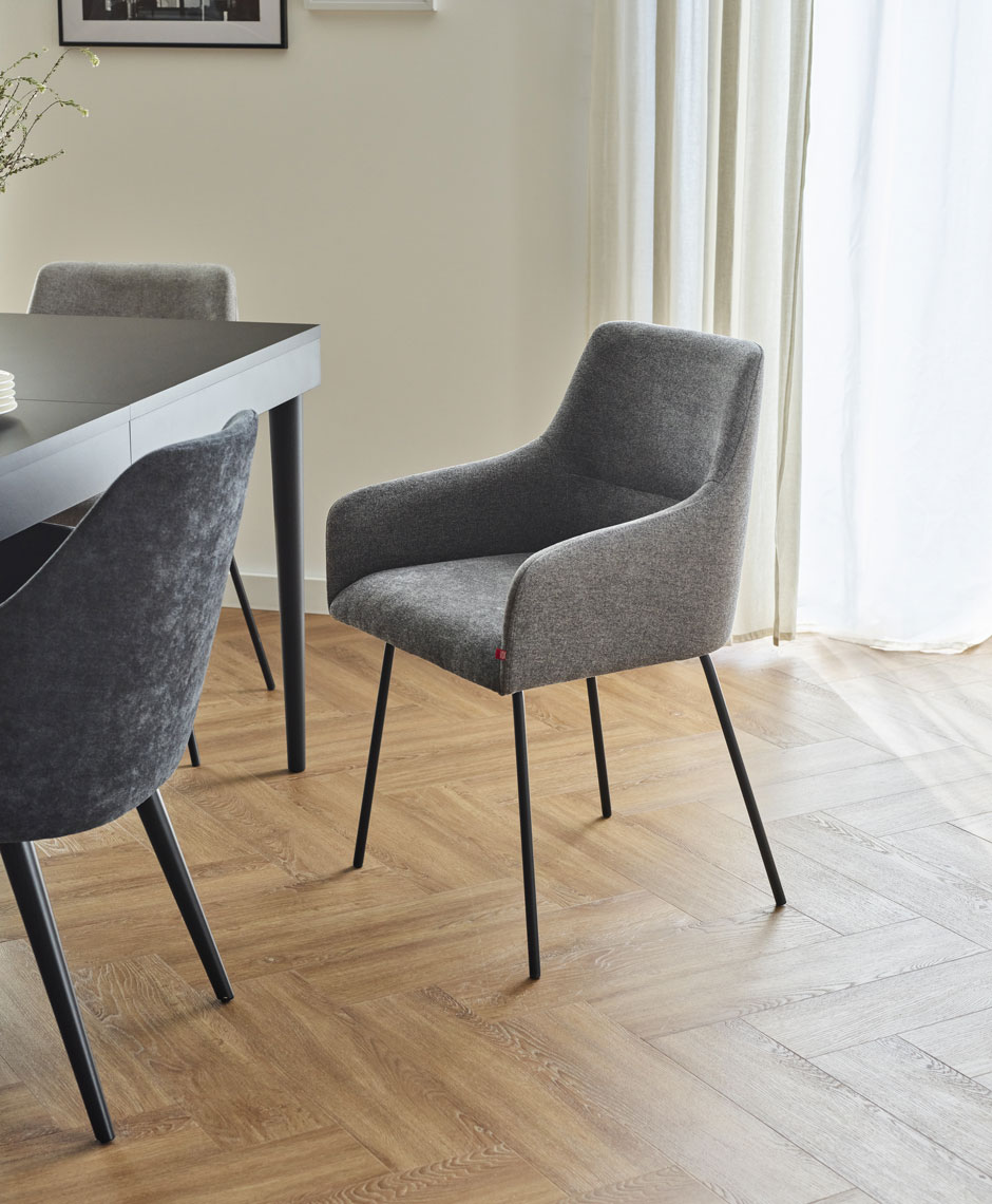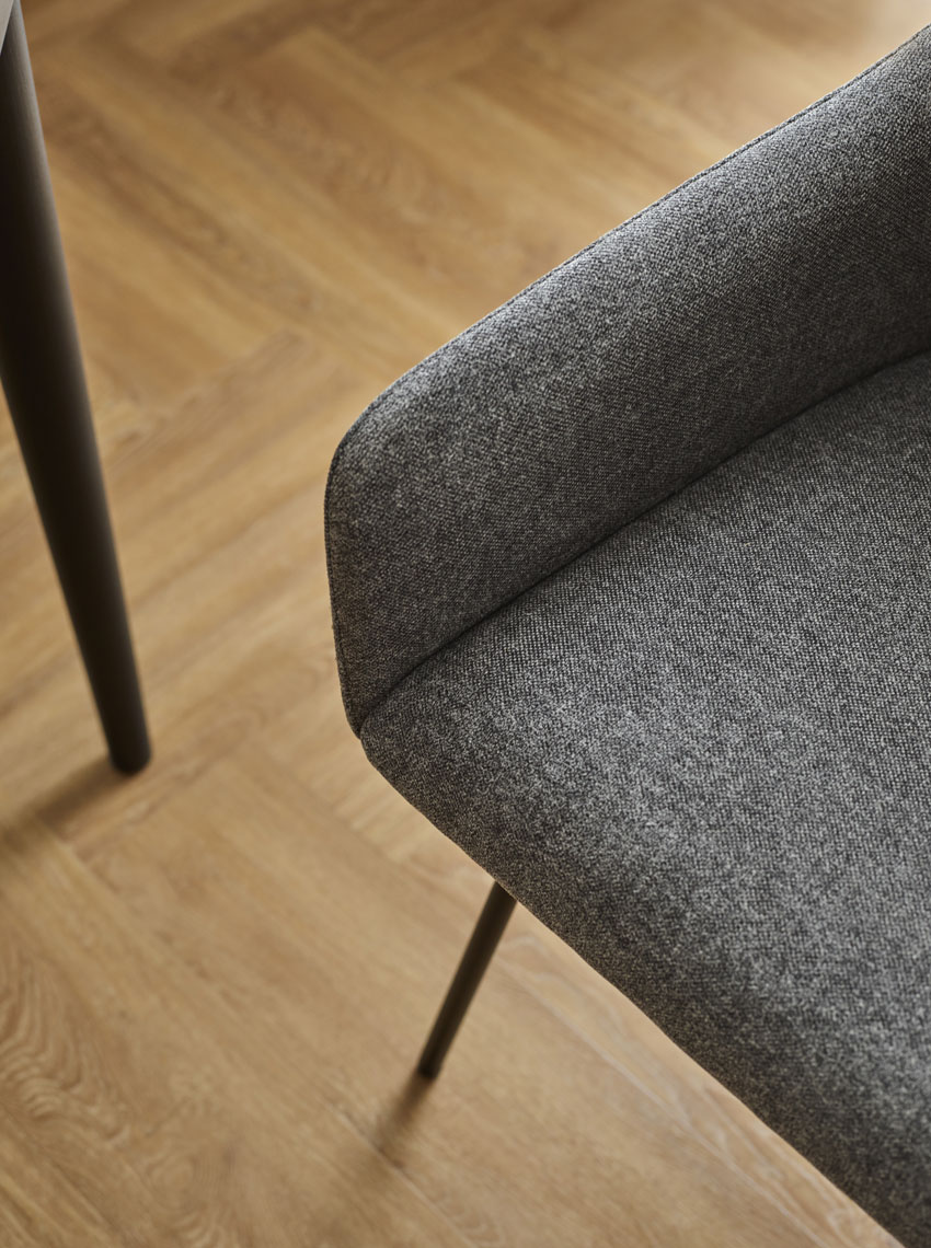 - Le revêtement de la chaise est disponible en deux teintes de gris intemporelles : clair et foncé.