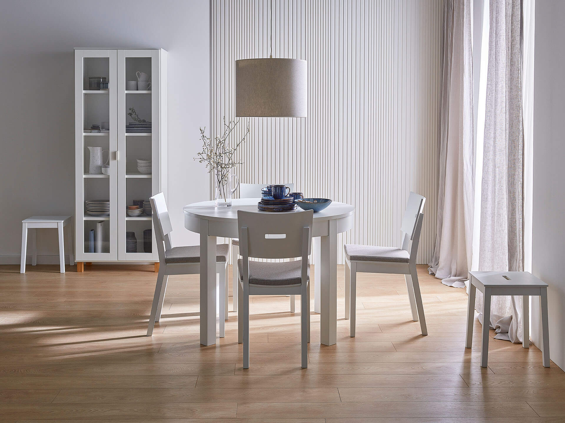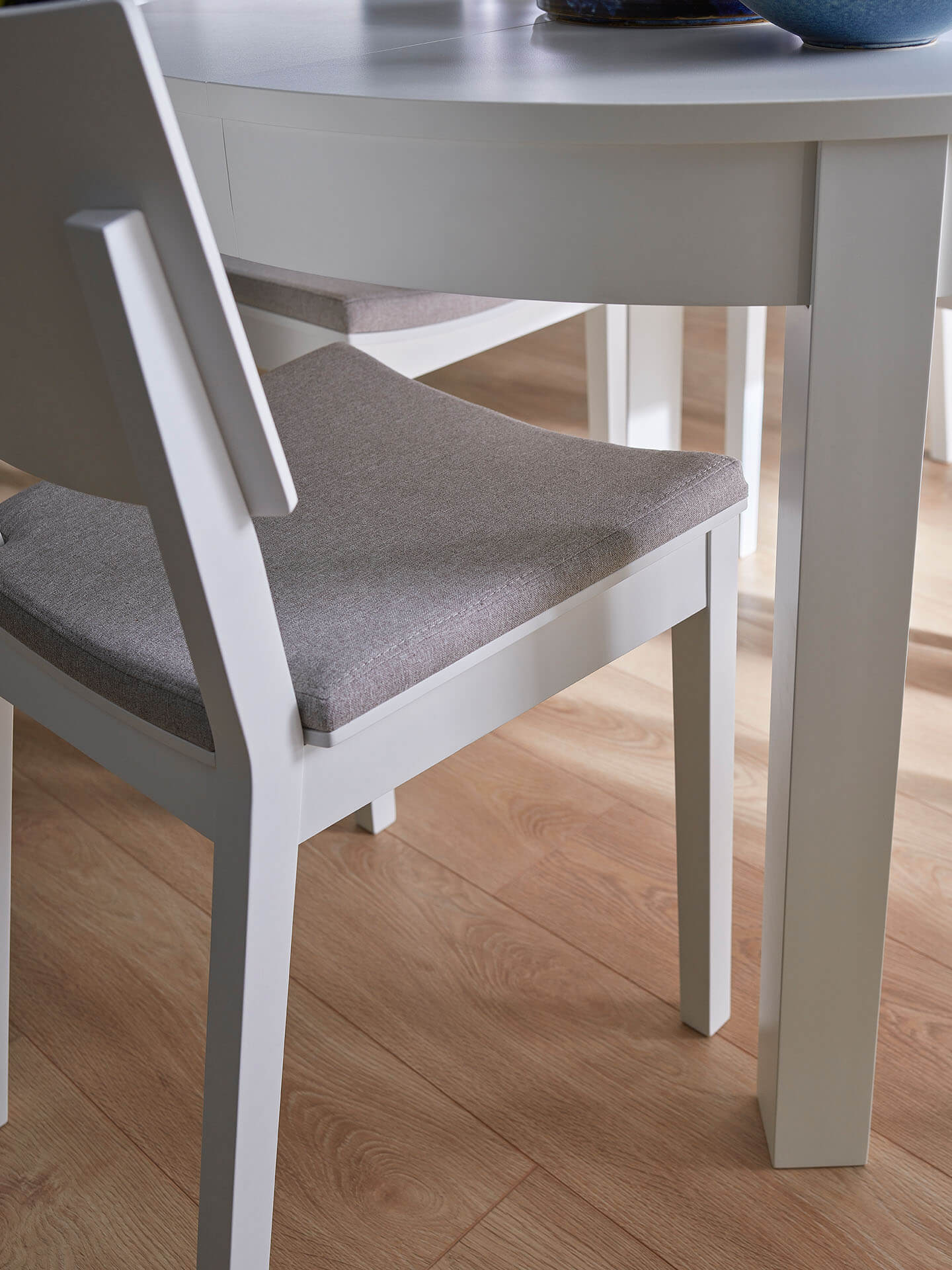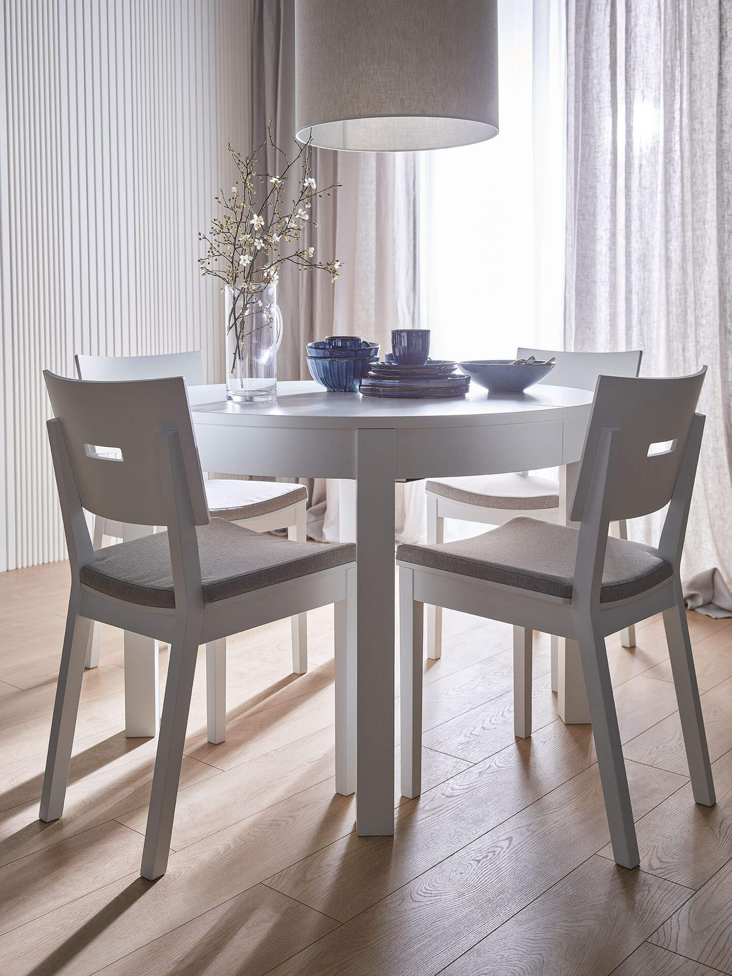 Les chaises de la collection Simple sont disponibles en 4 couleurs : blanc, noir, gris et chêne. Chaque chaise est disponible avec ou sans assise rembourrée.