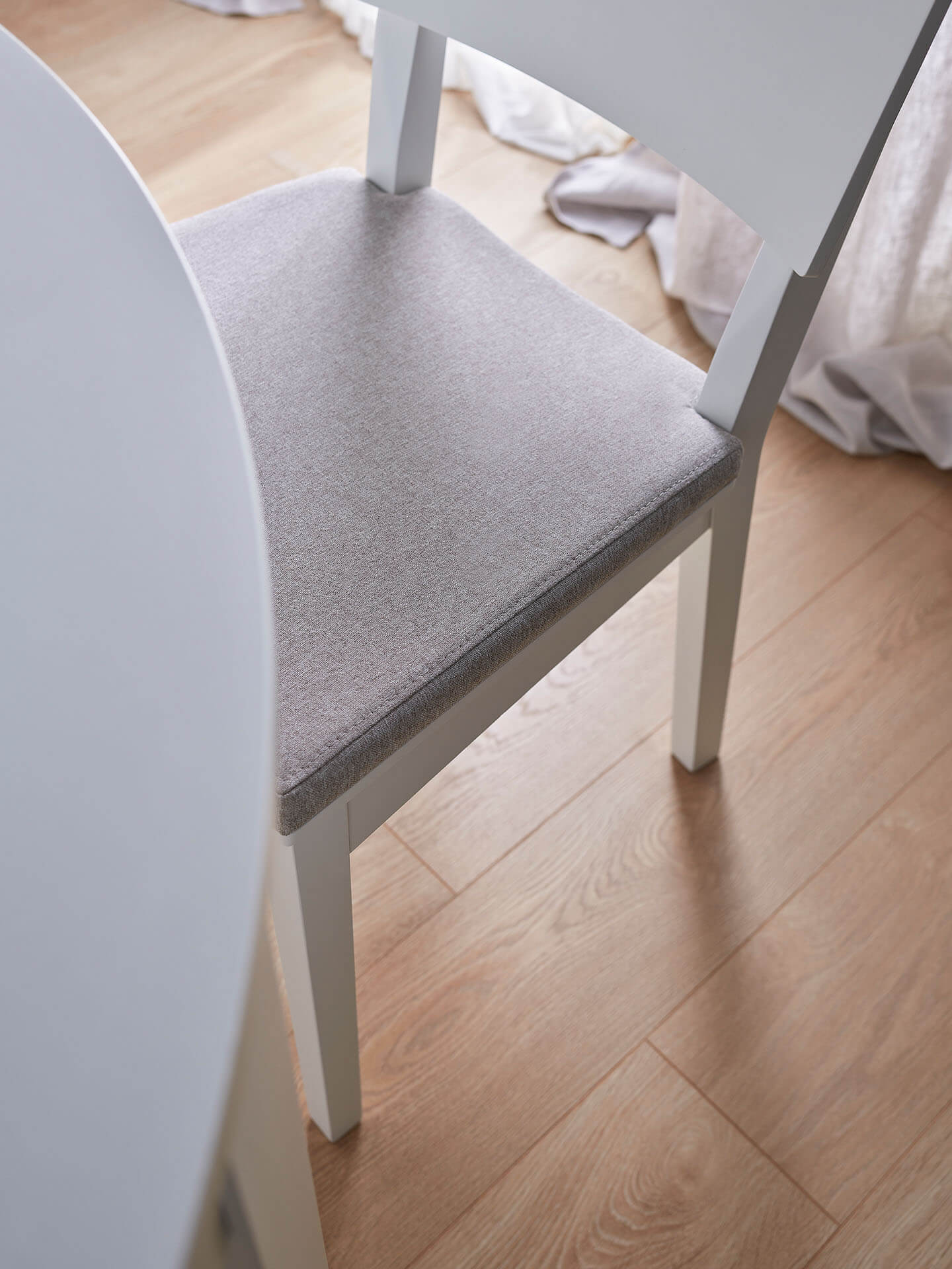 - Chaise : couleur chêne naturel, blanc, gris, noir.