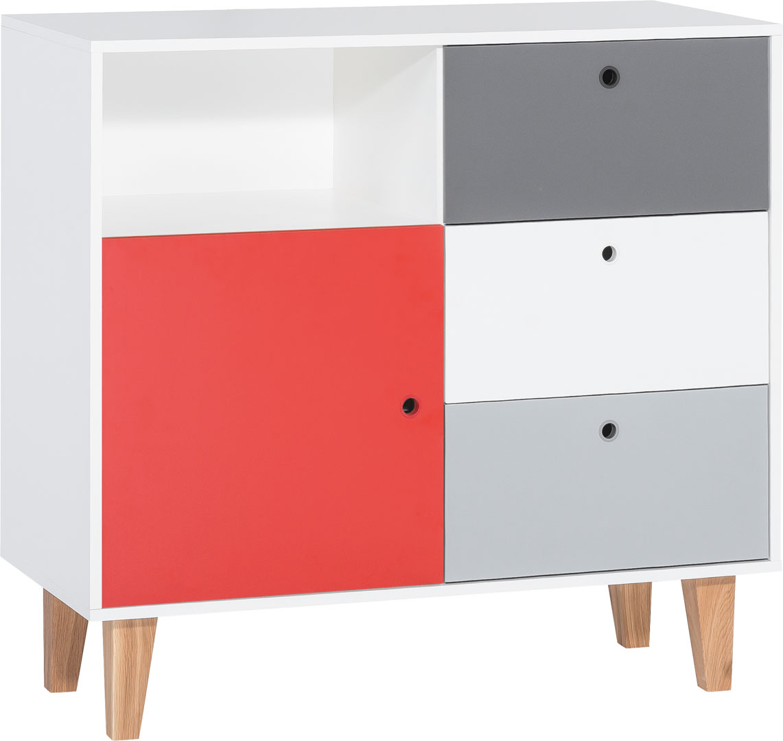- La commode s'intègre parfaitement dans le décor d'une chambre d'enfant ou d'adolescent, mais aussi dans celui d'un salon ou d'une chambre d'adulte. Vous pouvez tester son intégration dans votre espace grâce à l'application VOXBOX.