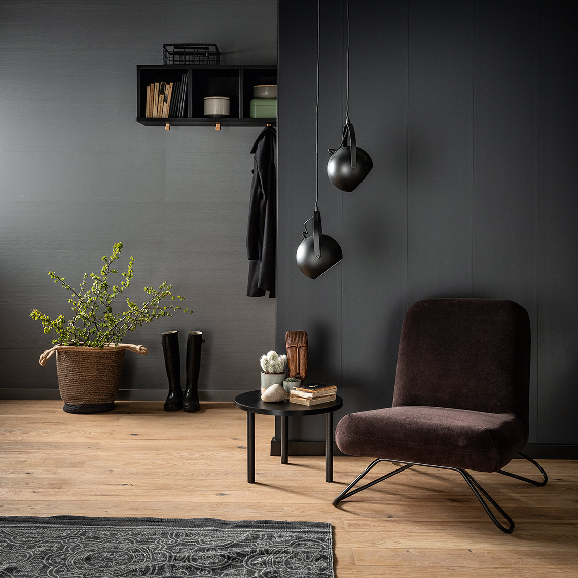 - La structure en métal plié noir confère au fauteuil Milva un caractère minimaliste.