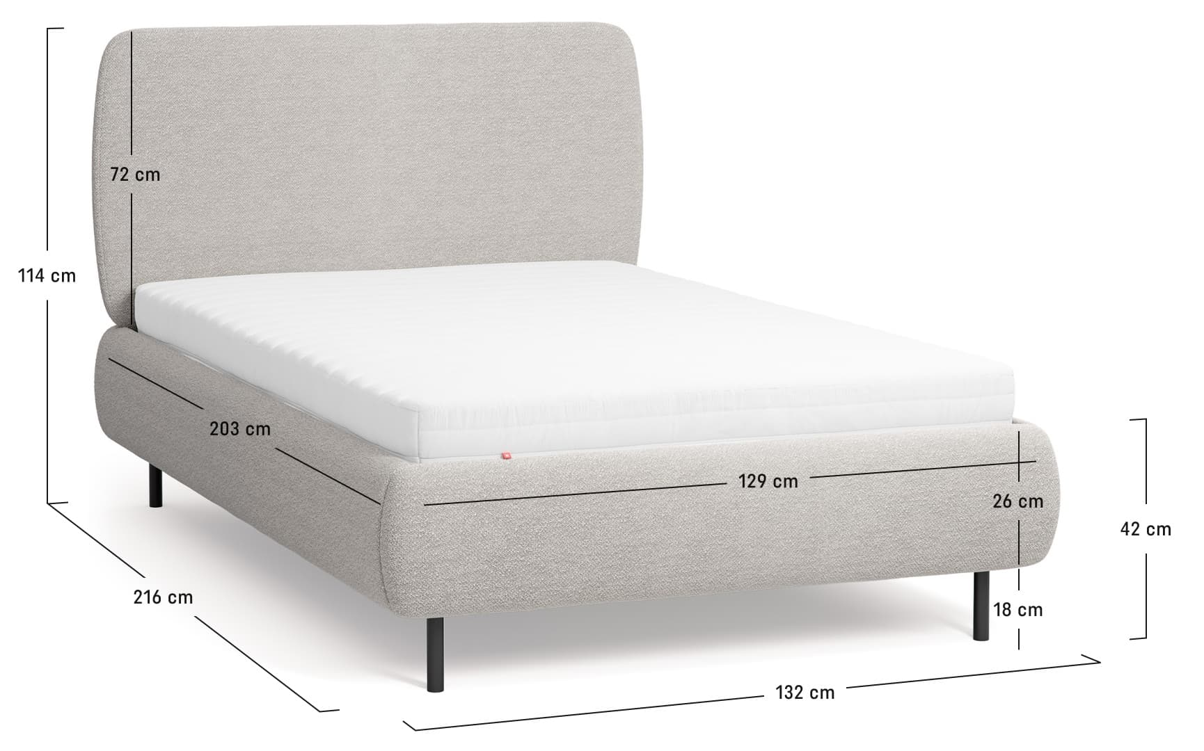 - Le lit, avec son cadre rembourré et son appui-tête lisse, assure le confort pendant le sommeil et les après-midi de détente. Le caisson légèrement arrondi et la finition arrondie de l'appui-tête augmentent la sécurité lors de l'utilisation.