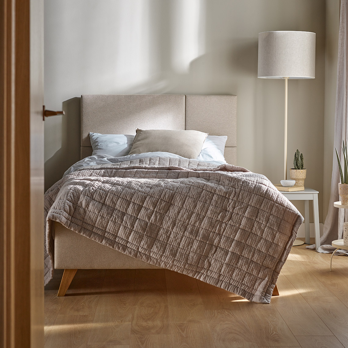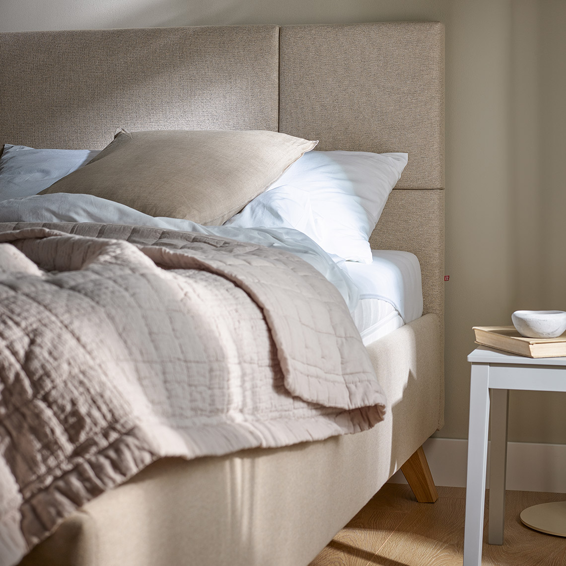 - Le meuble est recouvert d'un tissu d'ameublement - les côtés du coffre et l'appui-tête sont recouverts de tissu d'ameublement. Cela confère au lit un aspect élégant et donne à la chambre à coucher une ambiance chaleureuse. Le produit peut être personnalisé en choisissant le type et la couleur du tissu d'ameublement - les choix comprennent des tissus naturels, faciles à nettoyer et adaptés aux animaux domestiques. Le carnet de modèles est disponible dans la salle d'exposition VOX.