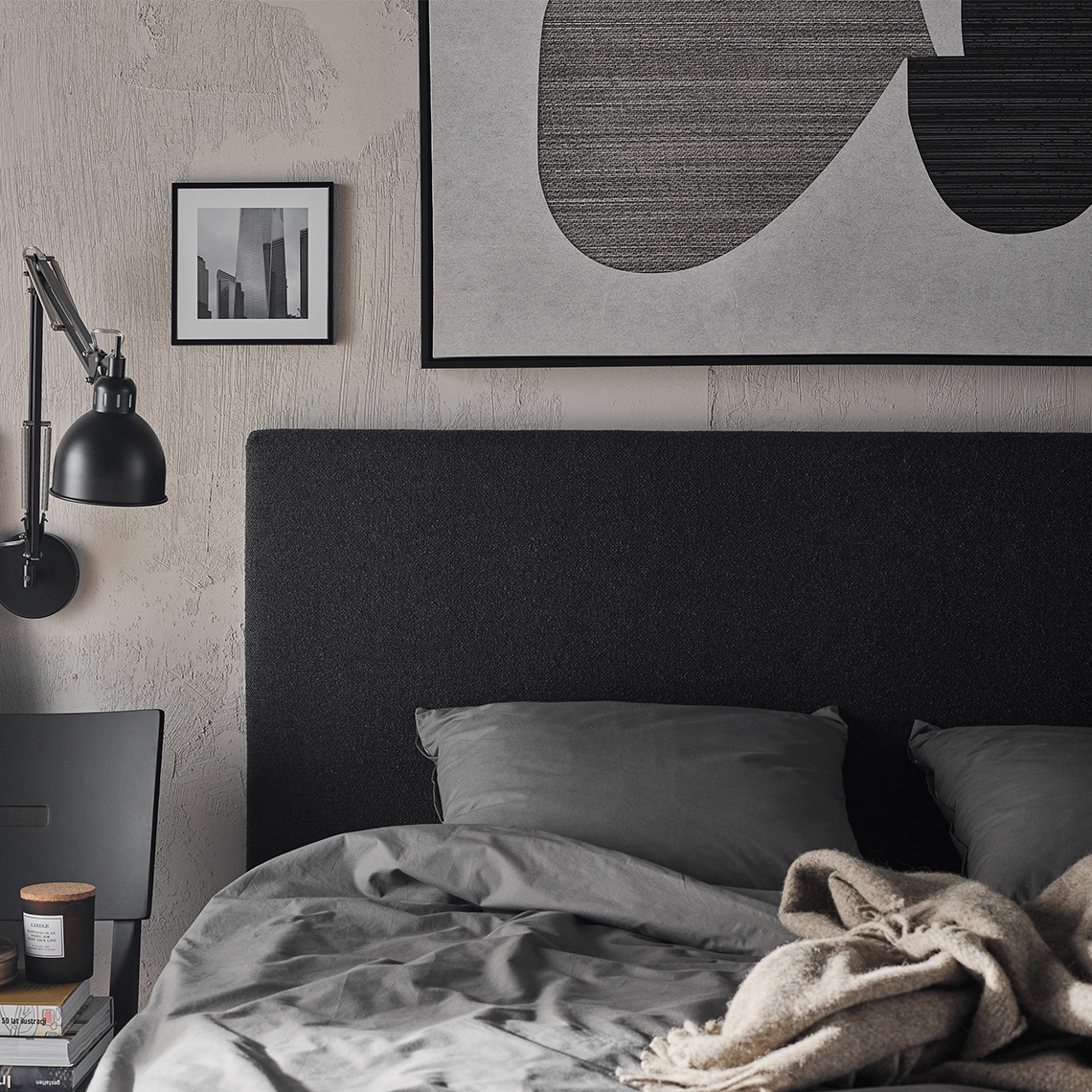 - Le coffre et l'appui-tête sont rembourrés, ce qui réchauffe visuellement et crée une atmosphère agréable dans la chambre à coucher. Vous pouvez personnaliser le produit en choisissant le type de tissu d'ameublement et sa couleur. Il peut être naturel, comme le lin ou la laine, facile à nettoyer ou particulièrement résistant aux griffes des animaux - un carnet de modèles est disponible dans le showroom VOX.