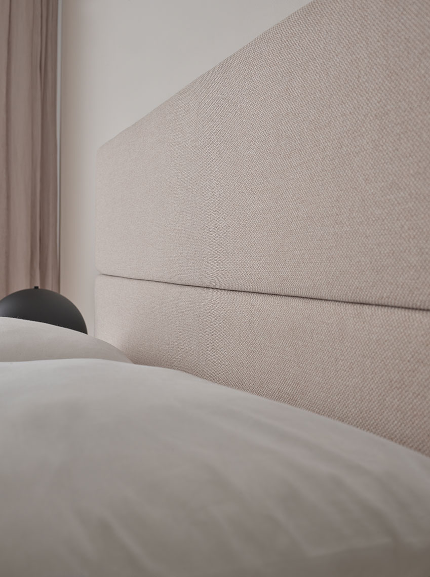 La douceur du dossier est due au rembourrage en mousse. Le caisson est en carton pour meubles, durable et résistant, recouvert du tissu de votre choix. Le cadre de lit en métal est équipé de ressorts (48 pièces, espacées tous les 23 mm) et d'un vérin à gaz (1000N). Le conteneur est en carton blanc et le fond est en HDF. L'ensemble repose sur des pieds en chêne, hêtre ou frêne massif. Le dossier de l'appui-tête est revêtu d'un tissu technique.
