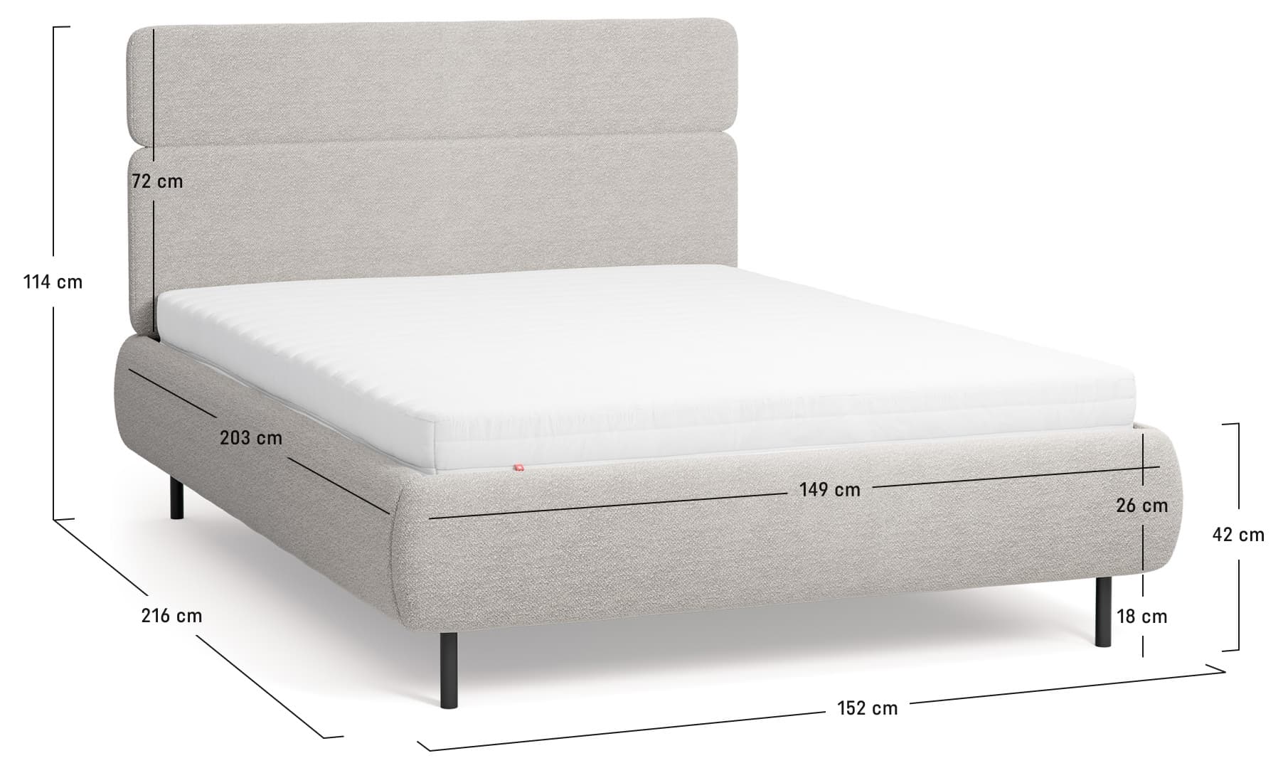 - Les pieds hauts rendent le lit visuellement léger et facile à dépoussiérer.