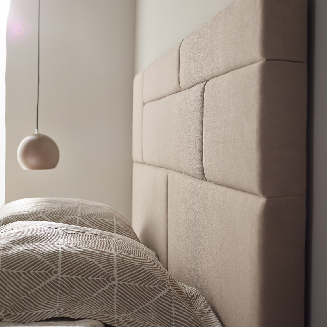 - La gamme comprend également d'autres lits rembourrés pour 2 personnes : Geometric, avec un dessus délicatement matelassé, et Puric, avec une tête de lit unie.