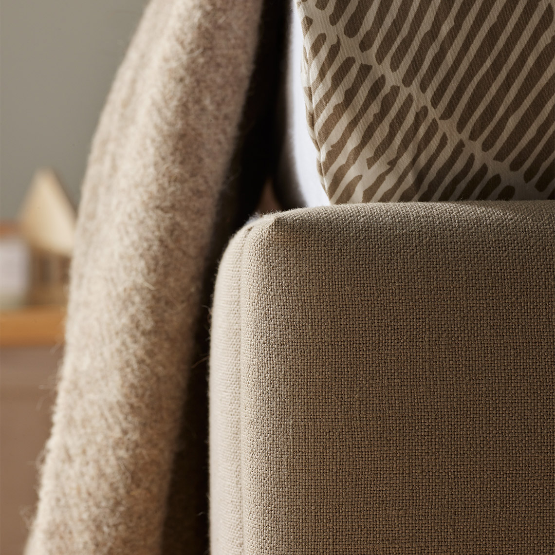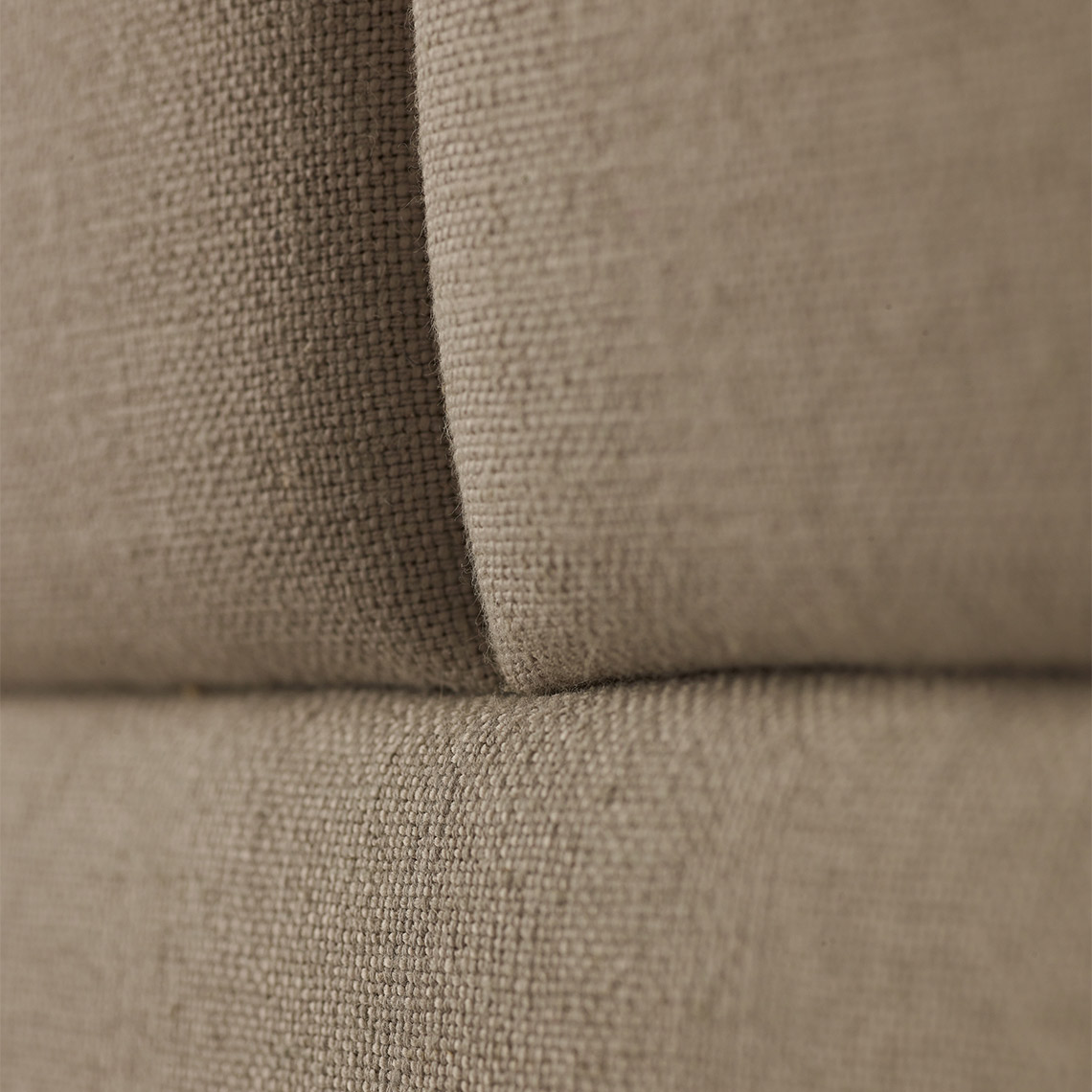 Le dossier rembourré est rempli de mousse, ce qui donne à l'appui-tête une sensation de douceur. La commode est fabriquée à partir de panneaux d'ameublement, résistants et durables, et est recouverte du tissu de votre choix. Le cadre du lit est en métal, avec des lattes à ressorts et un système de levage à gaz. La structure repose sur des pieds en chêne, hêtre ou frêne massif.