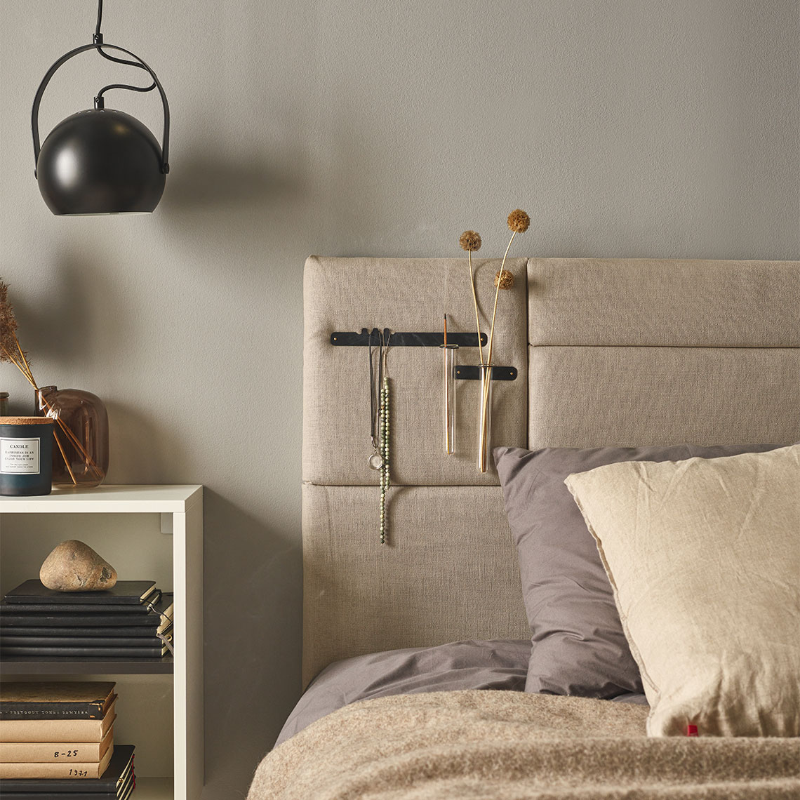 - Les pieds de lit en bois peuvent également être personnalisés. D'une hauteur de 18 cm, ils facilitent le nettoyage de la chambre. Ils sont disponibles en 5 versions au choix : chêne incliné, chêne clair incliné, noir incliné, chêne clair cylindrique et noir droit.