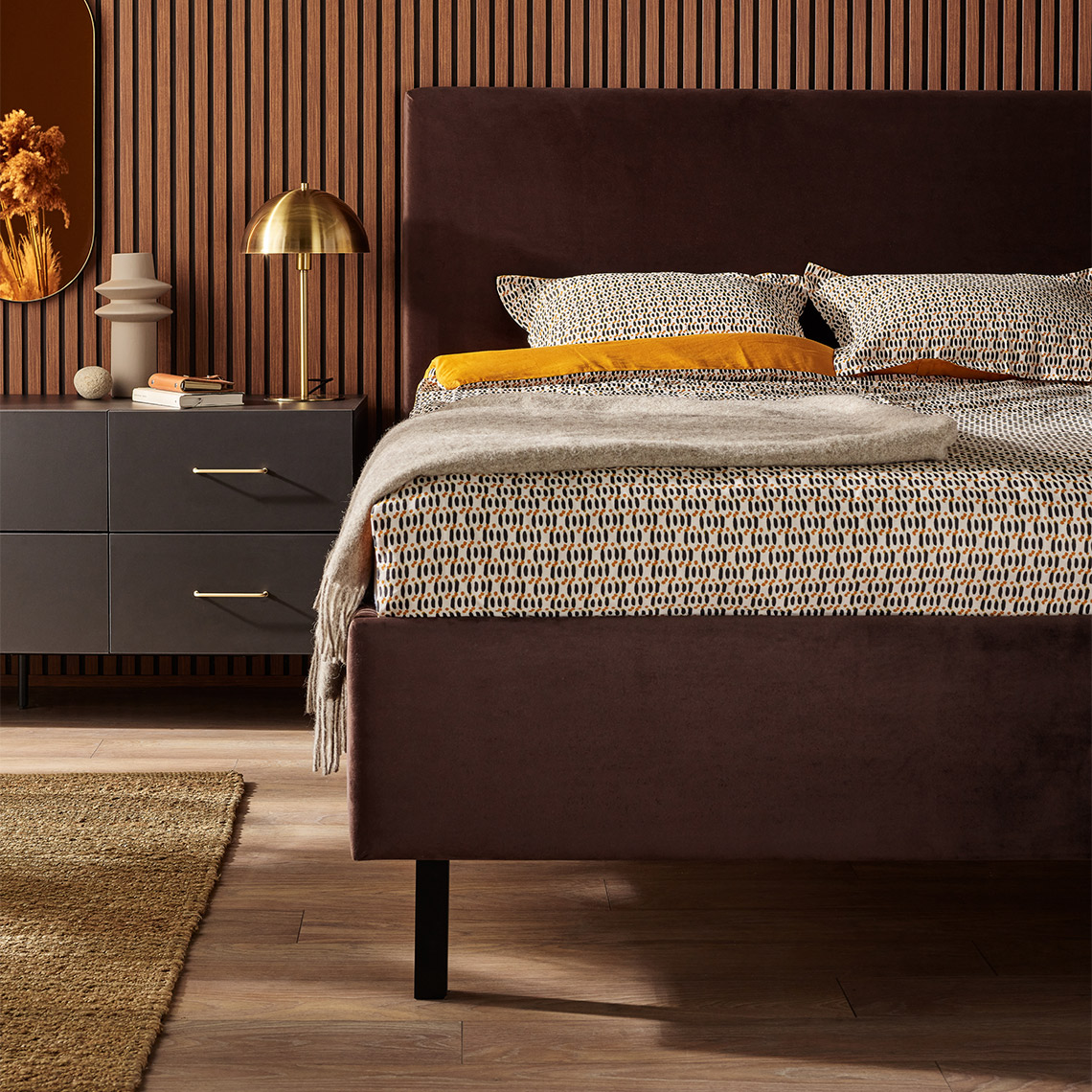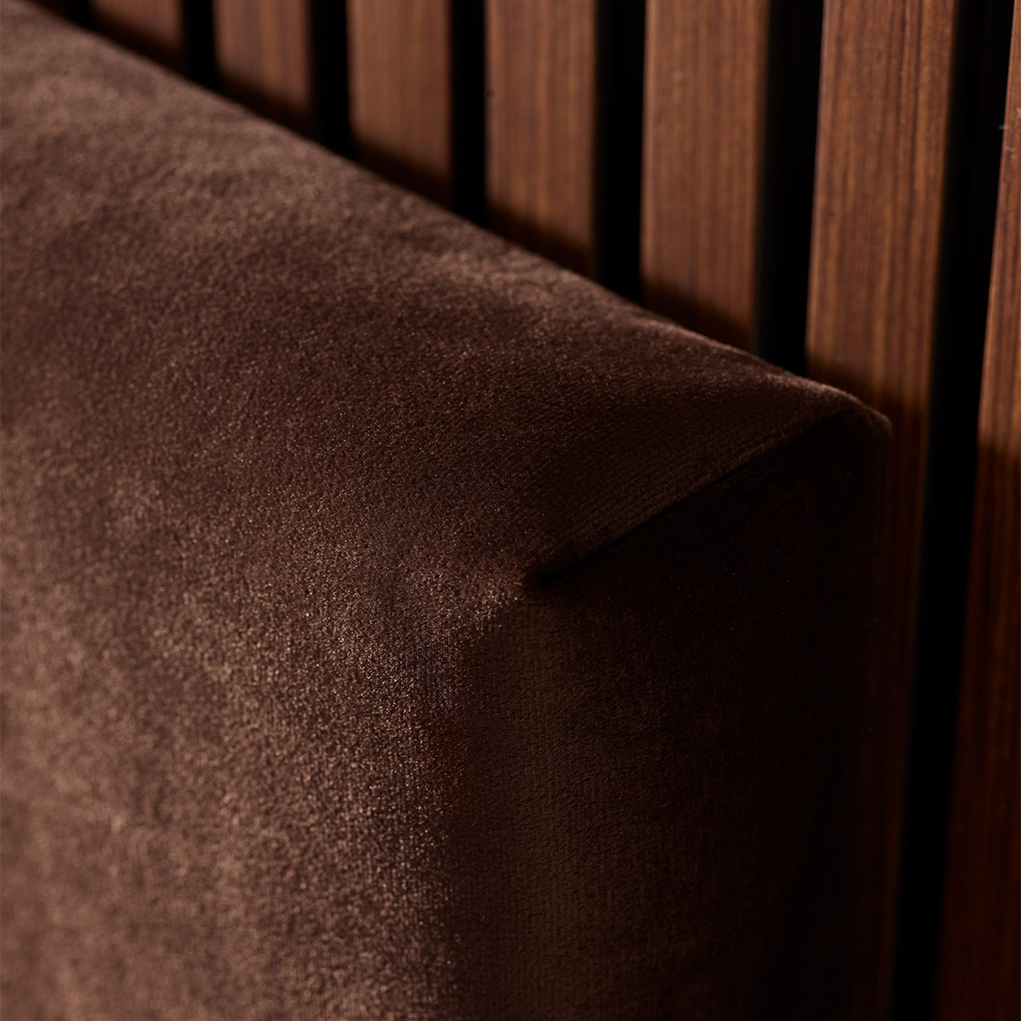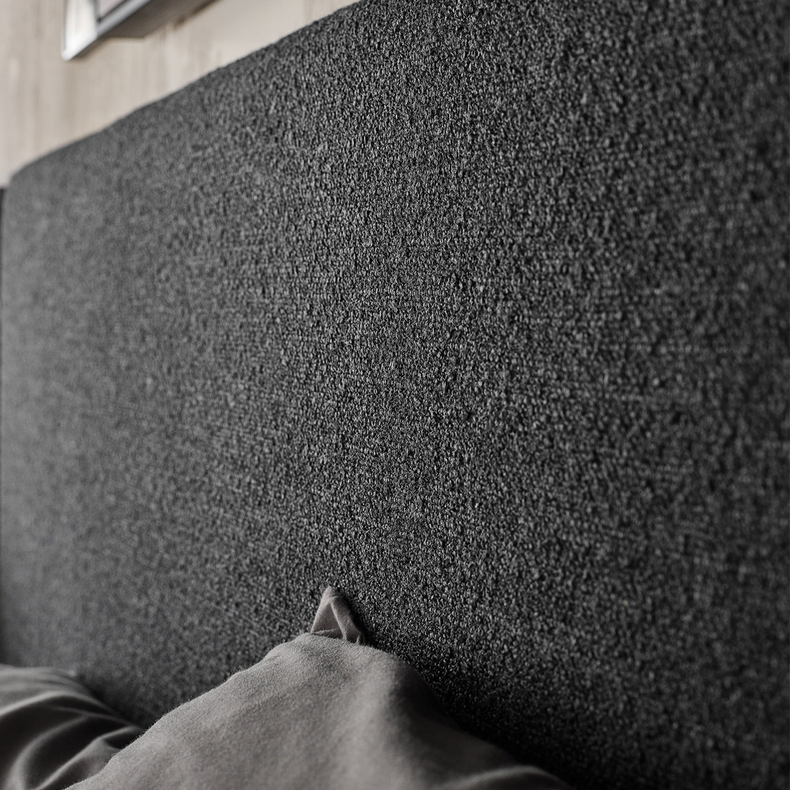 - Le coffre et la tête de lit sont recouverts d'un tissu d'ameublement, ce qui ajoute de l'élégance au meuble et confère une atmosphère chaleureuse à l'intérieur. Vous pouvez décider vous-même de la finition du lit. Vous pouvez choisir un tissu d'ameublement dans une variété de qualités et de couleurs, y compris à motifs. Pour ce modèle, nous proposons le plus grand nombre de tissus : naturel, facile à nettoyer, résistant aux dommages. Les tissus disponibles peuvent être consultés dans le showroom VOX.