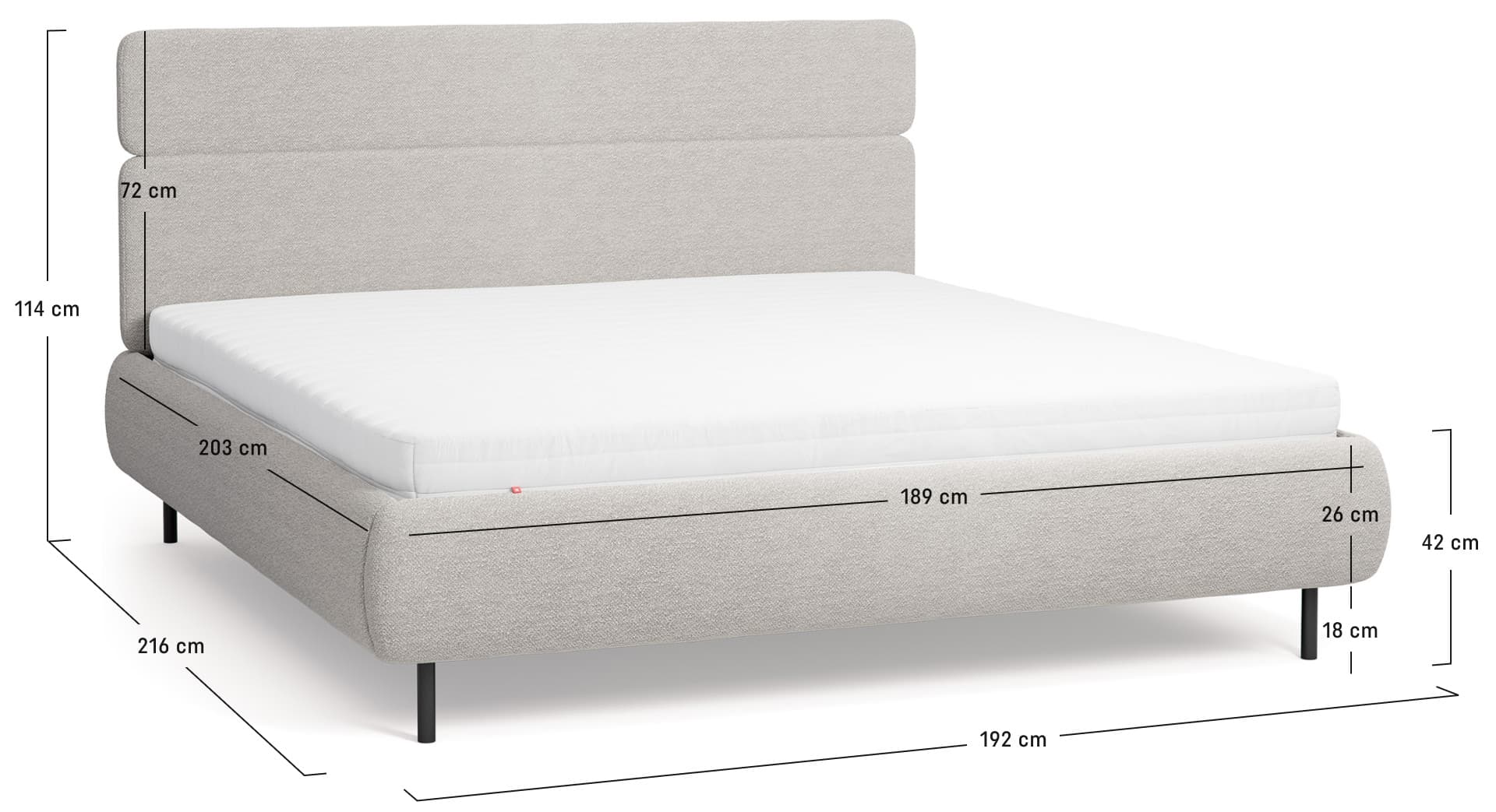 - Ce lit minimaliste et intemporel s'adapte facilement à différents décors et styles d'intérieur. Son revêtement peut être personnalisé - une gamme complète de tissus avec différents paramètres techniques est disponible dans les magasins VOX.