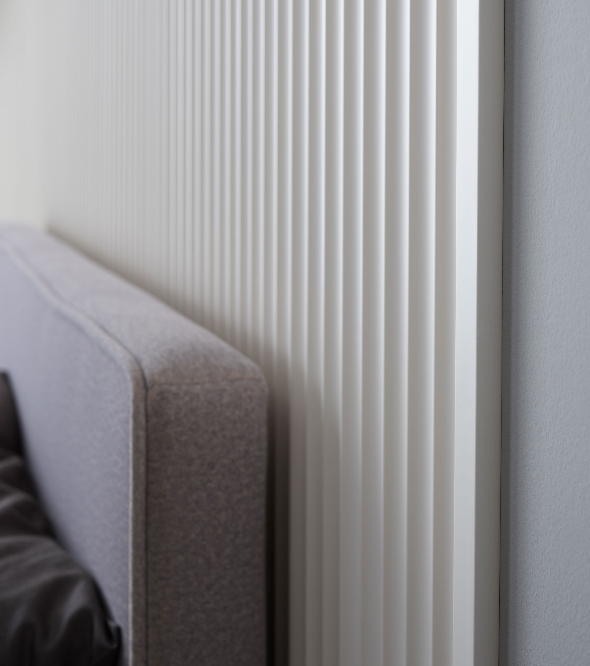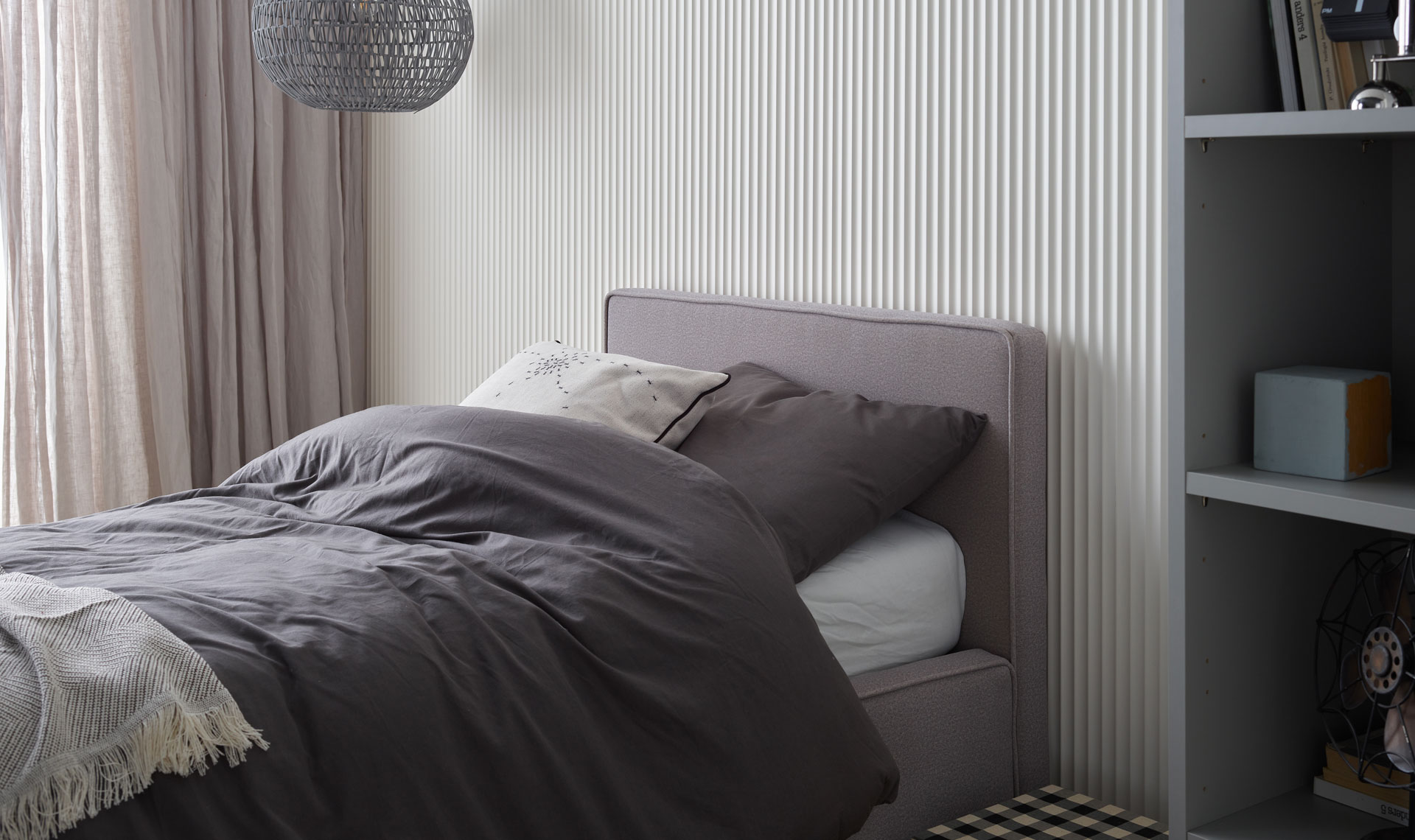 - L'appui-tête du lit est également recouvert de tissu à l'arrière, de sorte que le meuble n'a pas besoin d'être placé contre un mur.