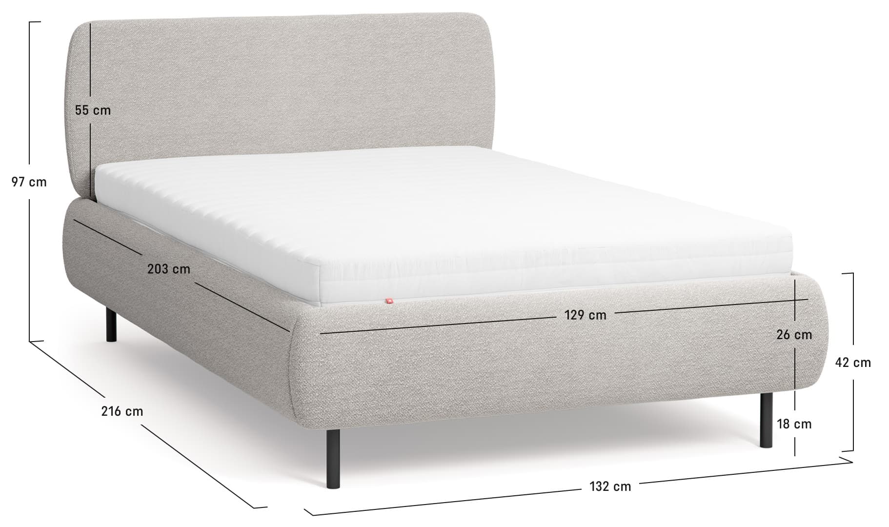 - Le lit est doté d'un appui-tête lisse et incurvé qui offre un soutien confortable au dos. Le caisson légèrement arrondi offre un maximum de confort.