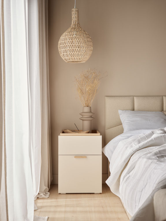 - Le lit est disponible en plusieurs variantes. Le lit peut être équipé d'un sommier fixe ou d'un cadre relevable pour un espace de rangement supplémentaire sous le matelas.